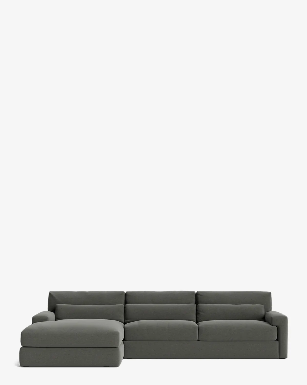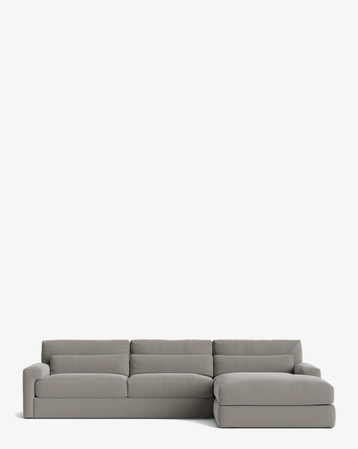 Our Beckstead Chaise Sectional 128″ is inspired by modern design elements but with a classically approachable feel. Handcrafted with luxurious comfort and durability in mind, the sectional features an alder wood frame and cushions filled with a feather and down blend. The lumbar pillows create a welcoming feel while its squared arms lend an element of sophistication. Customizable in a wide array of fabrics, you can make this made-to-order piece entirely your own.