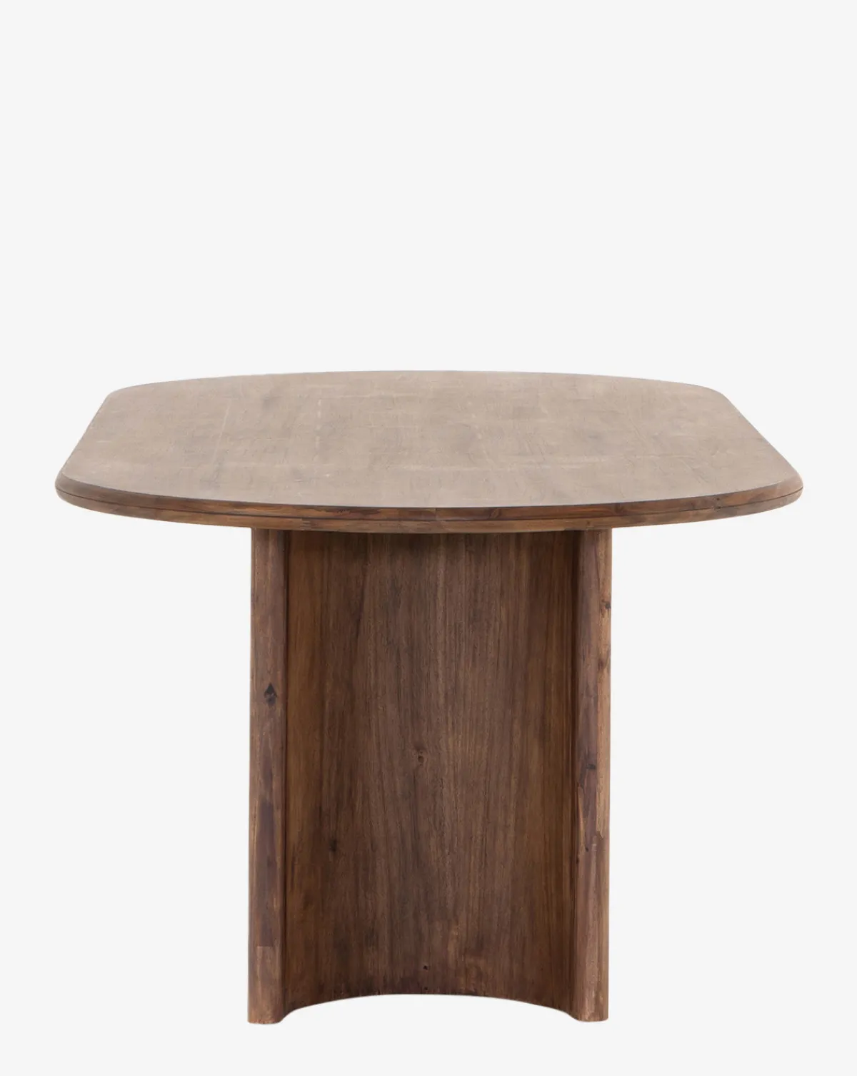 The Belvedere Dining Table is crafted from acacia wood to bring style, warmth, and comfort to your home. The solid wood forms a sprawling oval tabletop, supported by sleek crescent-shaped legs that offer strength and stability. Its natural wood grain creates an element of beauty, elevating the space with an organic feel.