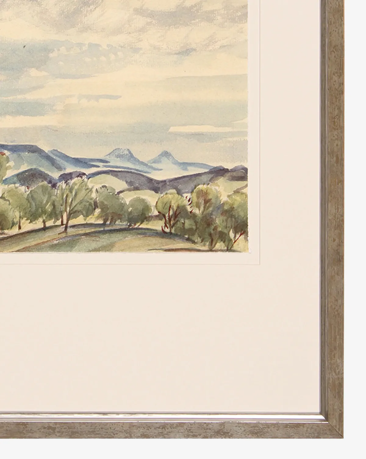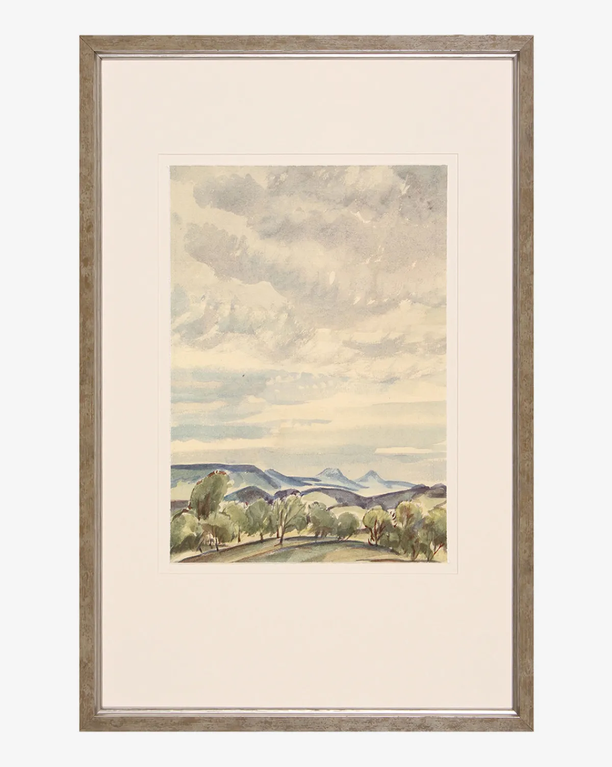 A whimsical landscape in a vertical composition, Blue Sky & Trees features simple brushwork in a bright palette. A museum-quality giclee print on a single mat, the expressive artwork tells a story wherever the piece rests. The silver-finished wood frame adds character to your wall treatments or dresser vignettes.