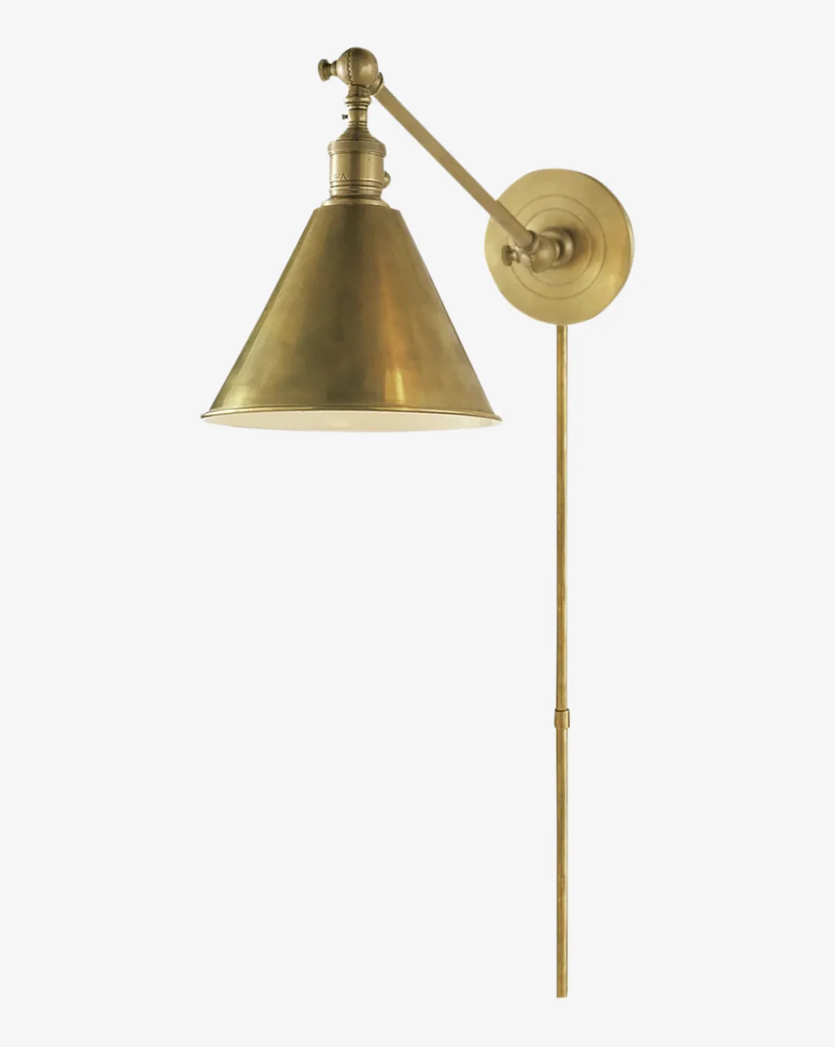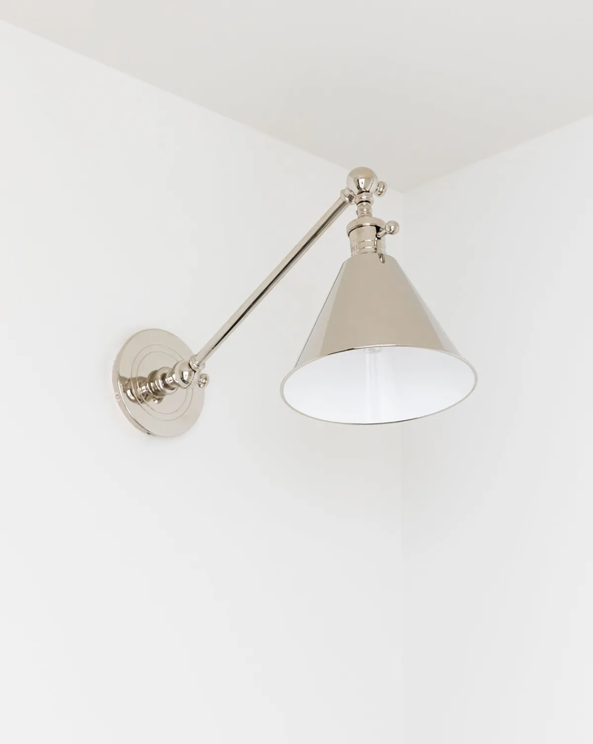 Bring adjustable lighting to your space with this transitional swing arm, wall light. Four unique finishes of both polished and antiqued nickel, bronze or hand-rubbed antique brass, allow this modern fixture to blend seamlessly with existing decor.
