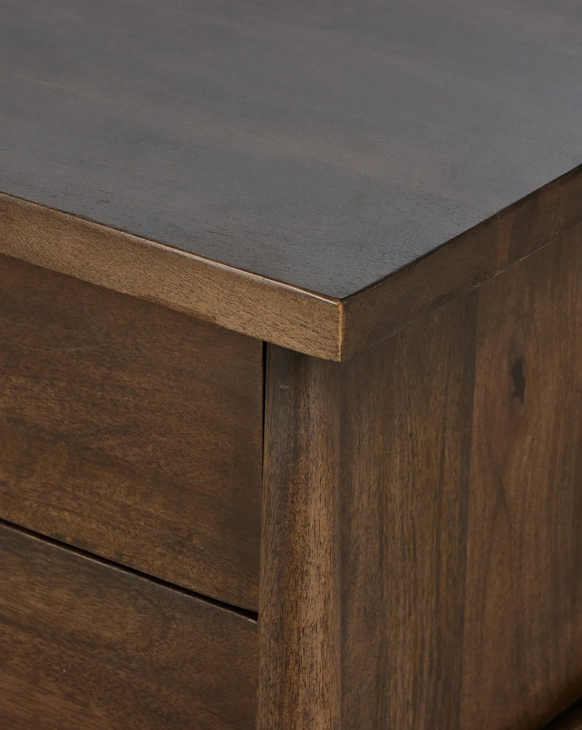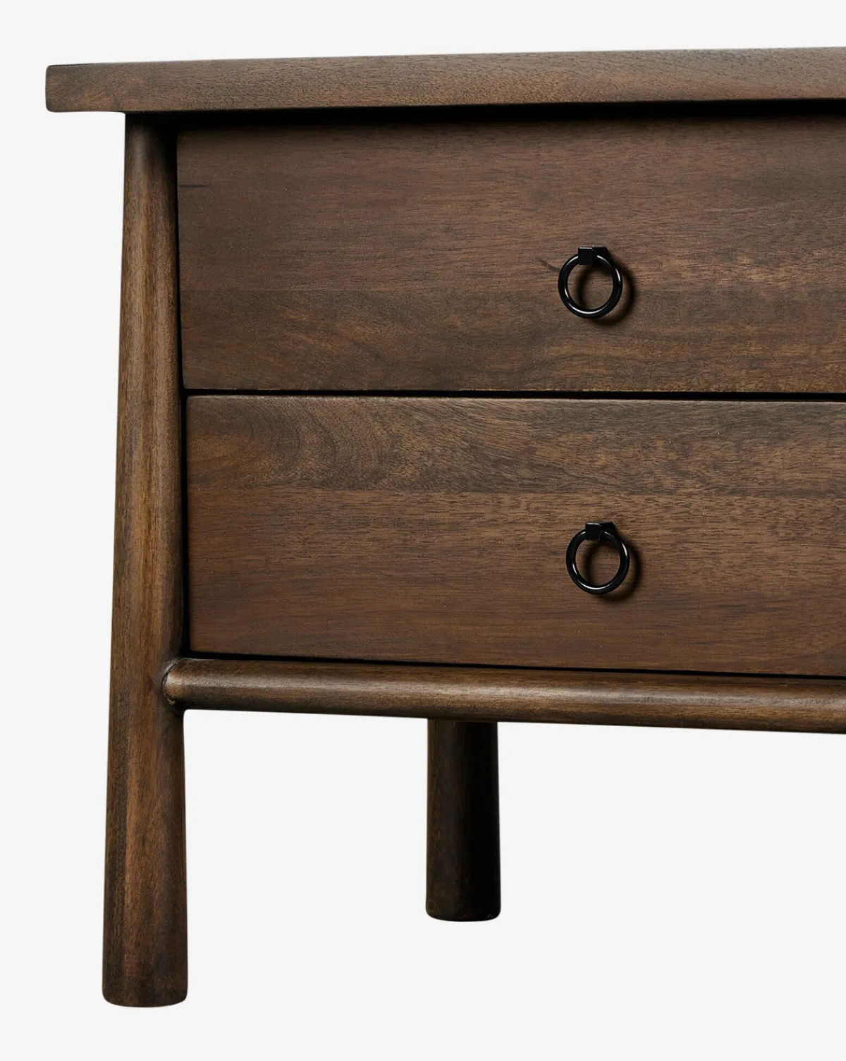 A traditionally inspired design with distinct details brings a modern-meets-antique feel to styling to the bedroom. Two drawers provide practical storage while the iron pulls lend subtle sophistication to your space.