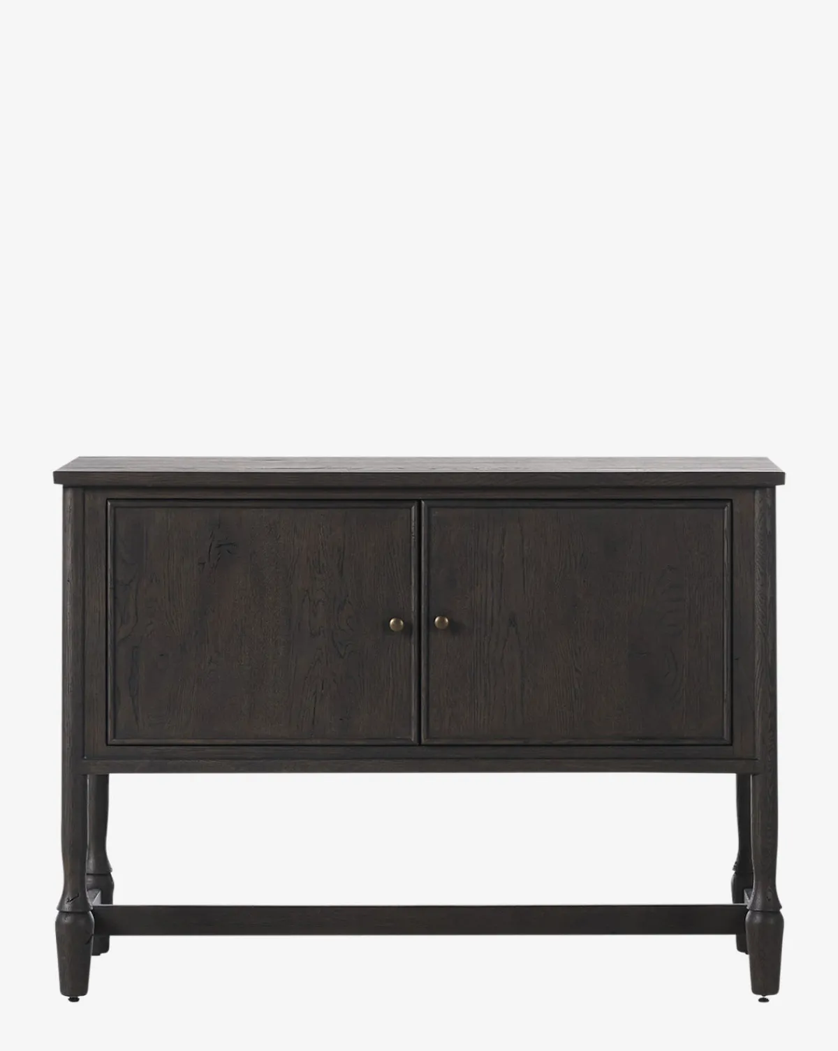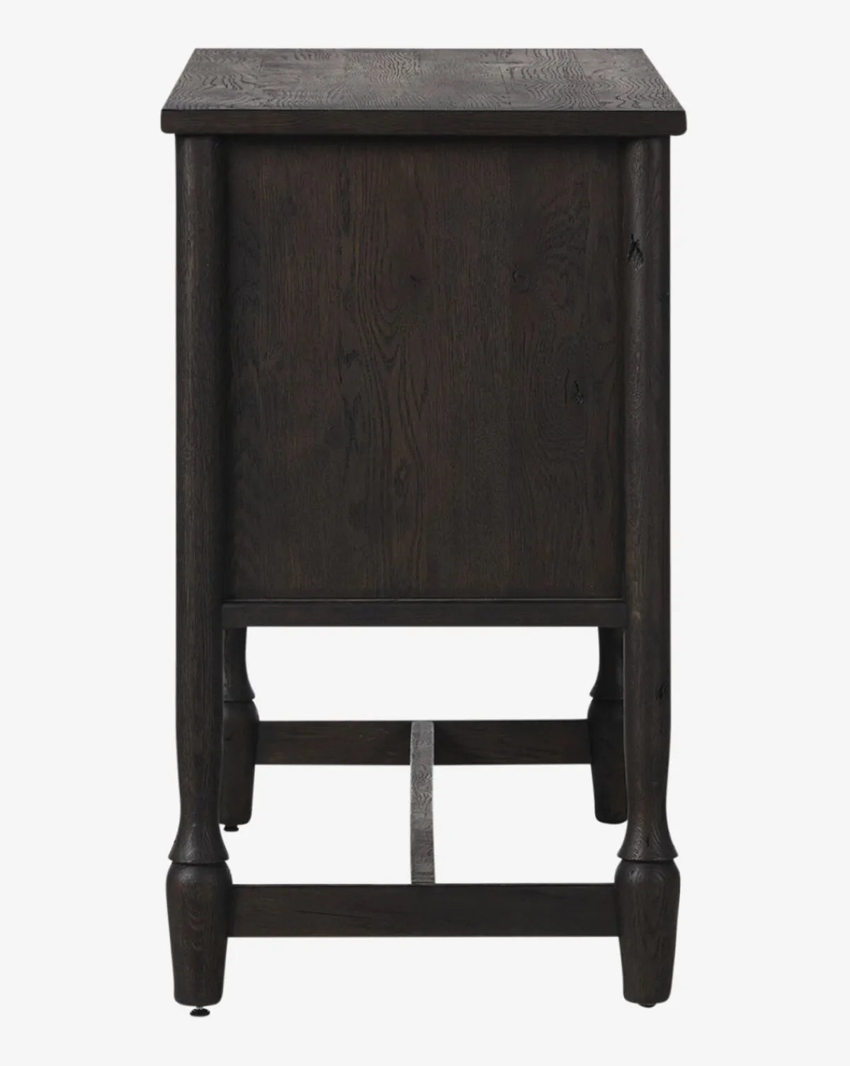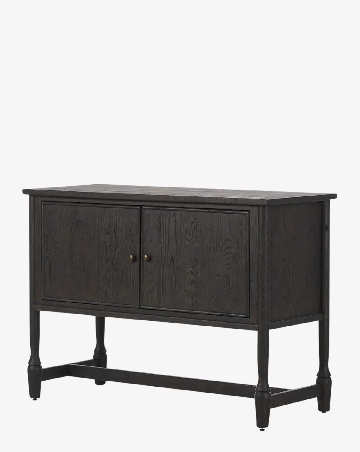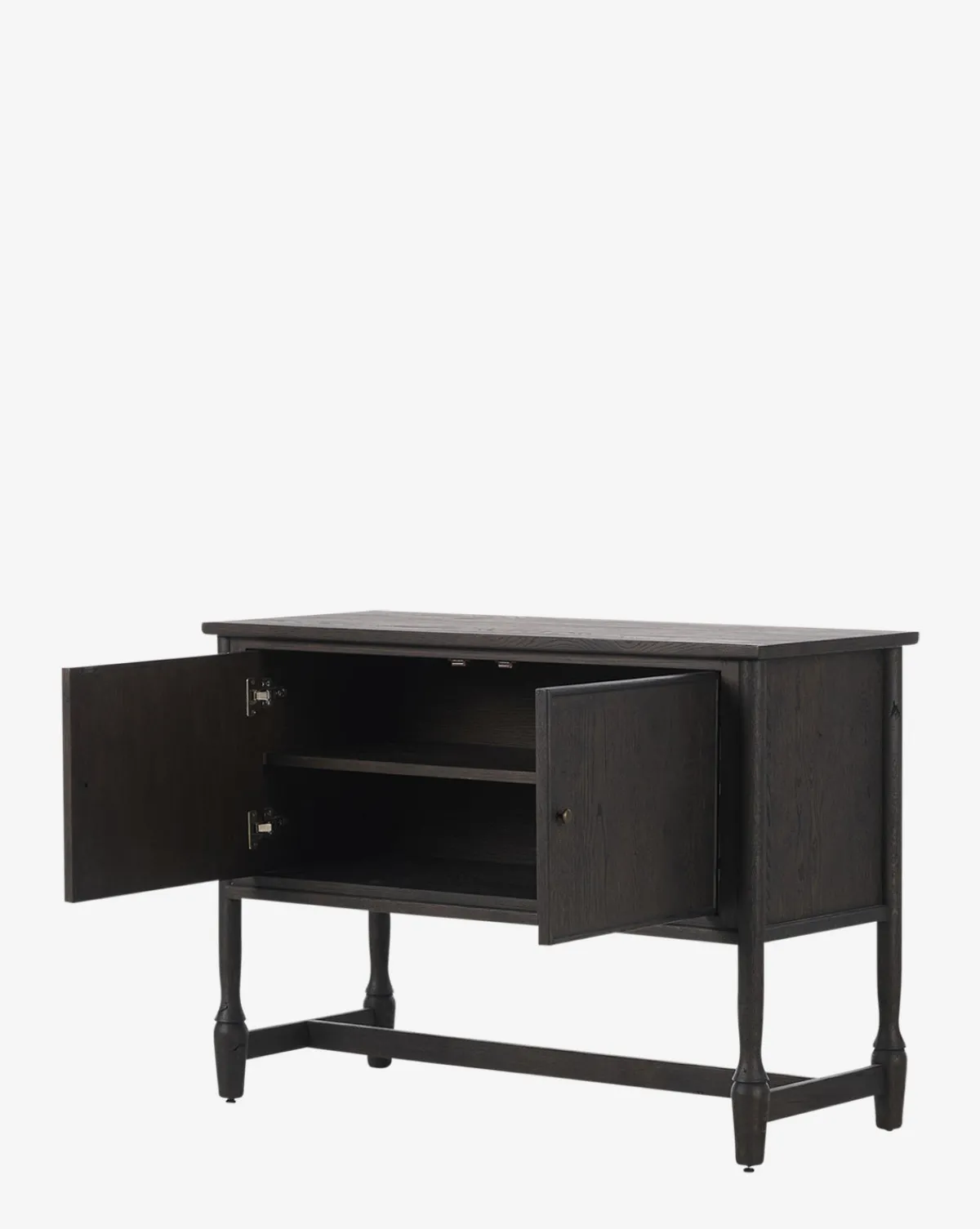 With a striking cracked smoked black veneer and solid oak construction, the Elmer Sideboard exudes modern sophistication. Bronze antimony-finished iron hardware adds a refined touch, making it a statement piece for any space.