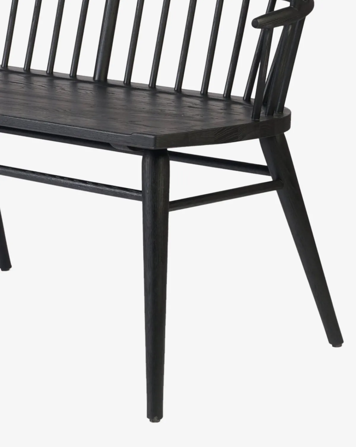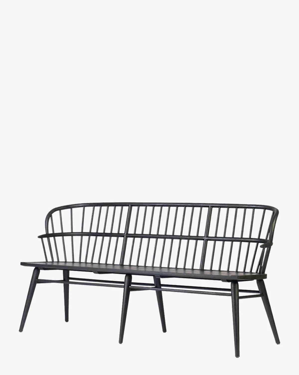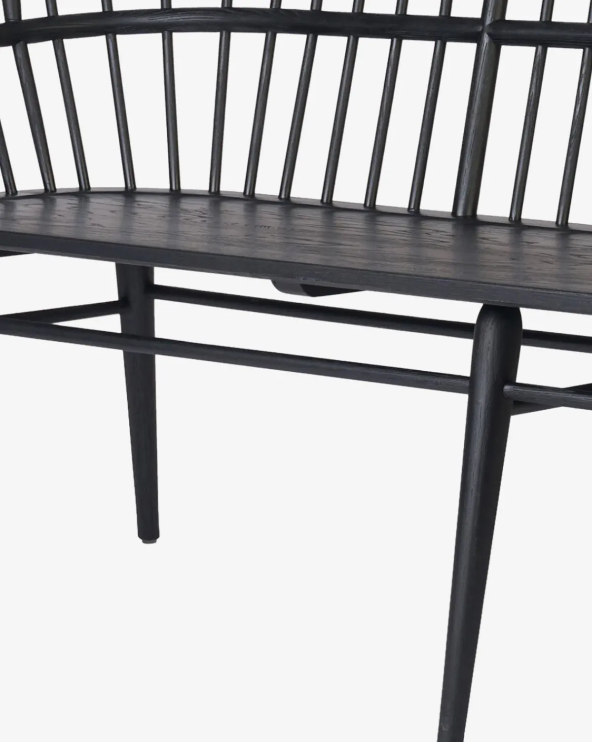 A modern take on a classic design. The Elysia Bench features a sleek, black-finished solid ash frame and a beautifully crafted double-tiered back. Its refined yet timeless design effortlessly elevates a range of home styling aesthetics.