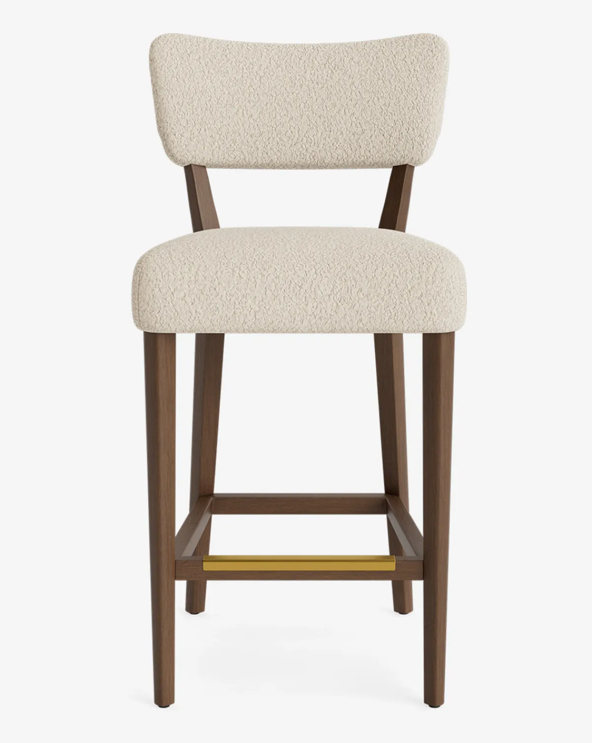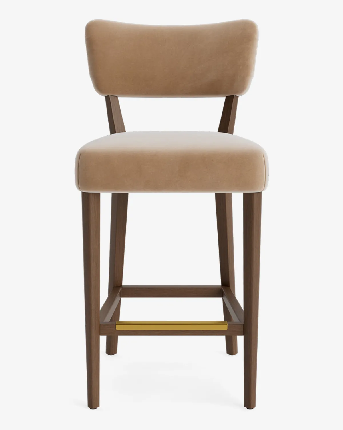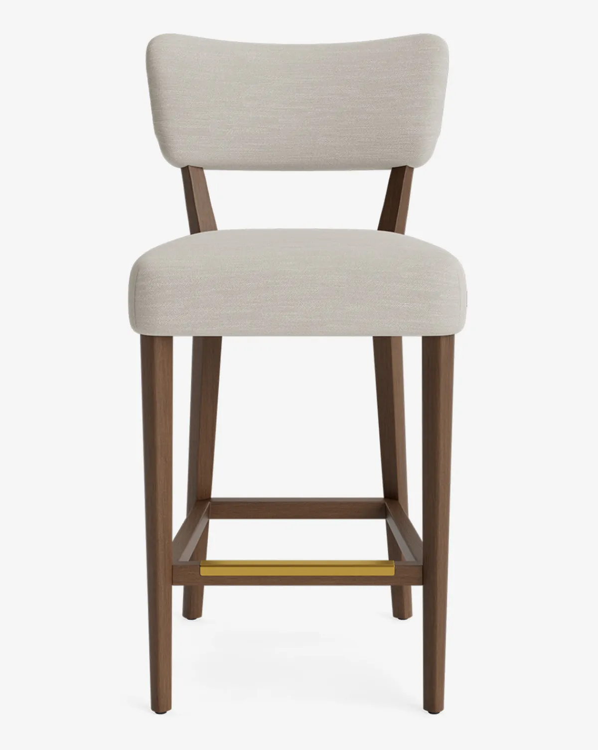 Vintage inspired and artfully designed, our Etienne Stool is a timeless staple for your kitchen styling. With a classic form, the stool features tapered square legs and a soft curve on the top and bottom edge of the back. The chestnut wood finish offers a rich warmth and the plush seat cushion caters to comfort. Customizable in a wide array of fabrics, you can make this made-to-order piece entirely your own.