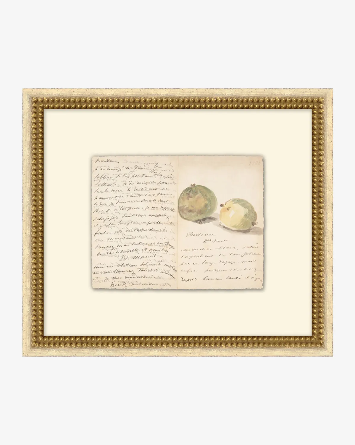 Family Recipe blends nostalgia and charm with its handwritten notes and watercolor-style fruit illustration. Printed as a giclée on matte paper, this piece is deckled and floated on a mat, creating a layered, collected feel that brings warmth and character to your walls.