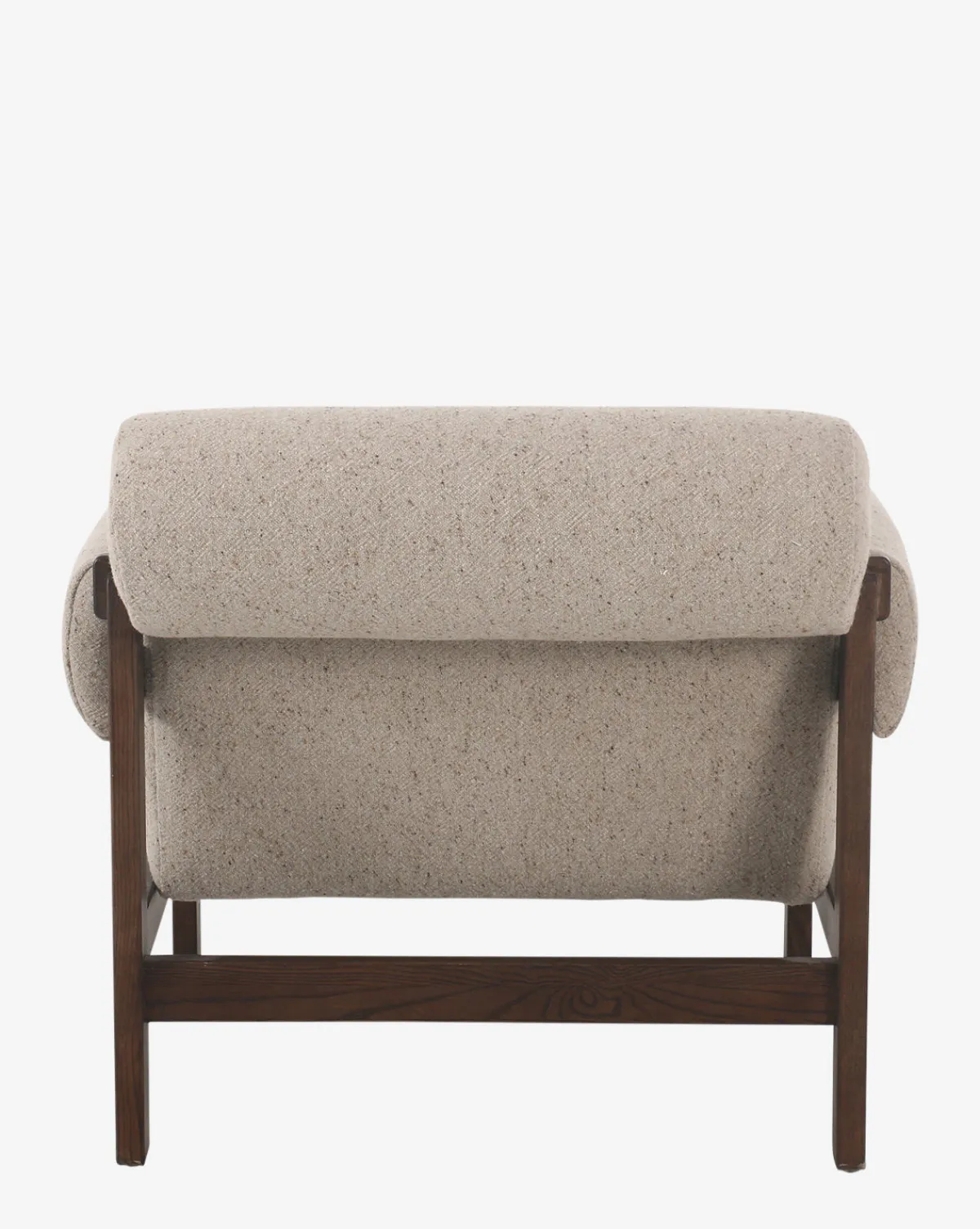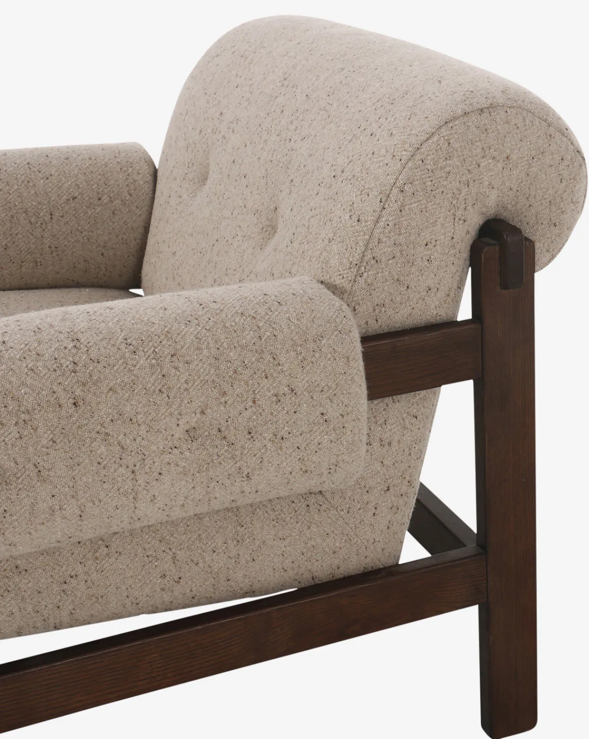 Comfortable and timeless, the Florent Chair features a dark wood structure. Its beautiful frame holds cushions upholstered in a taupe fabric and filled for a welcoming sit.