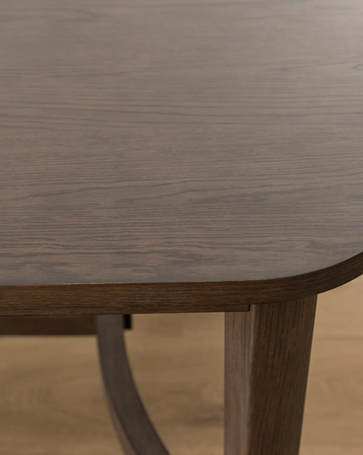 Gather in timeless style with the Gardiner Dining Table in Walnut Oak. Featuring a warm, rich finish and gracefully curved base supports, this table blends classic craftsmanship with understated elegance. Ideal for anchoring meals and memories, it brings a refined, inviting presence to any dining space.
