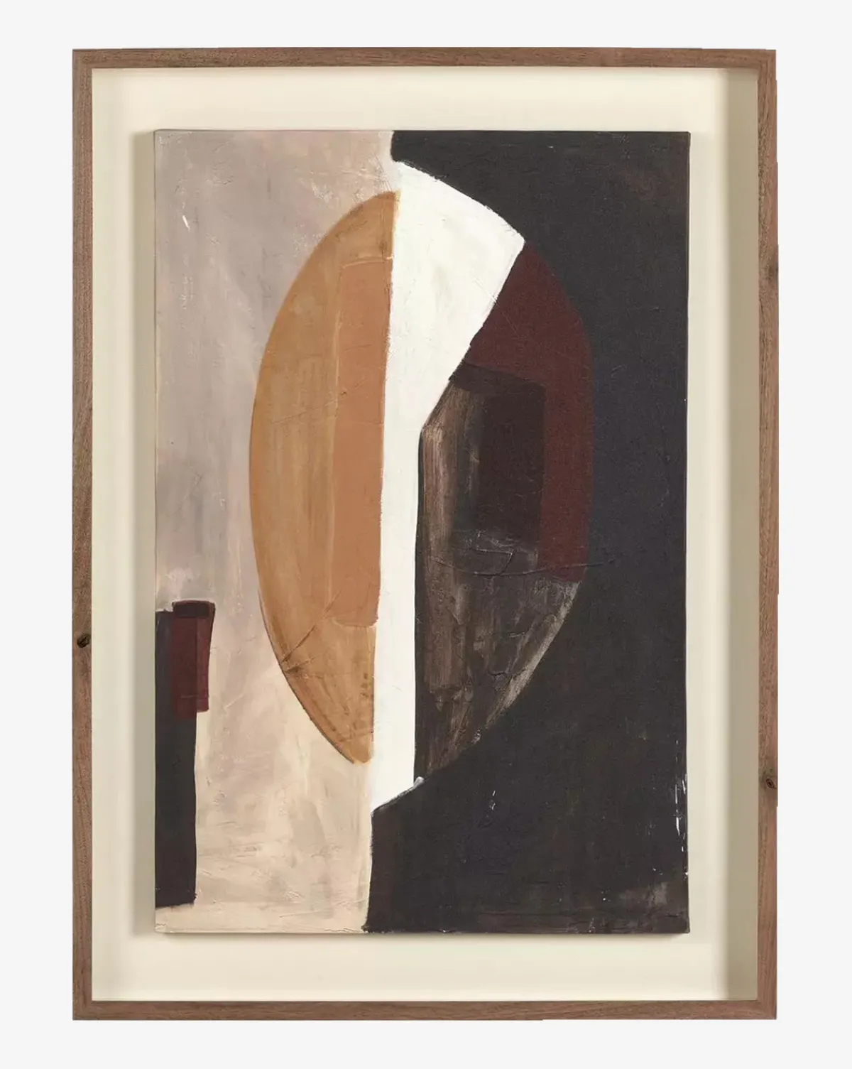 In a bold composition, Half of Me is presented on matte canvas within a rustic walnut wood frame. Exploring tone and texture, the abstract piece brings beauty and intrigue wherever it is styled.