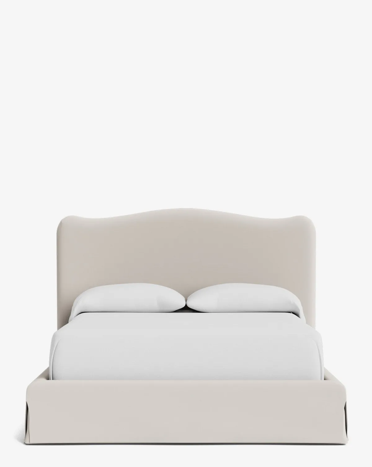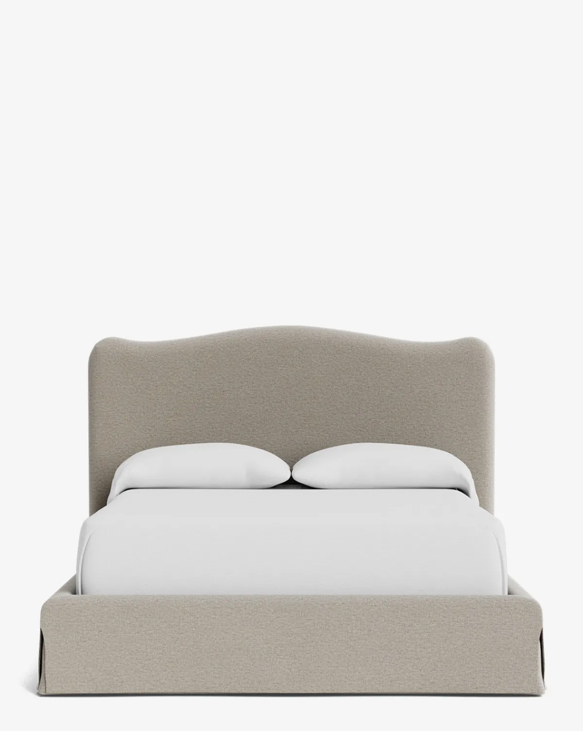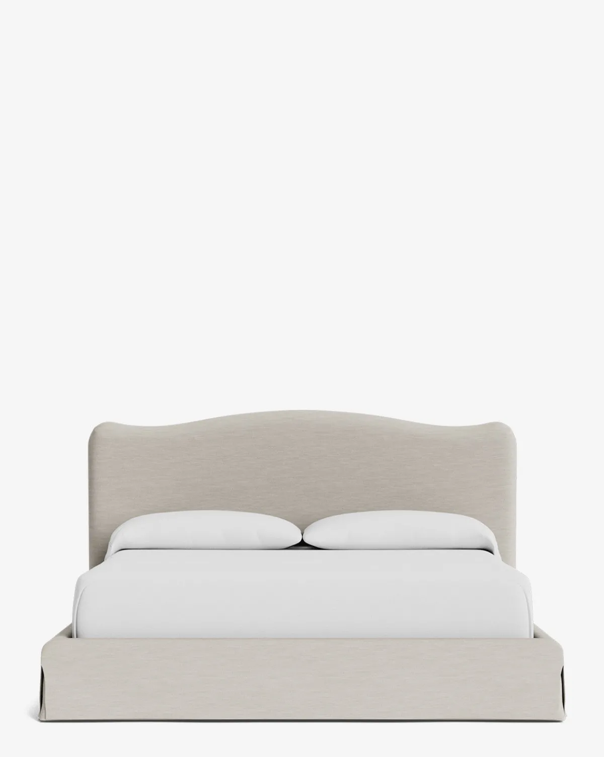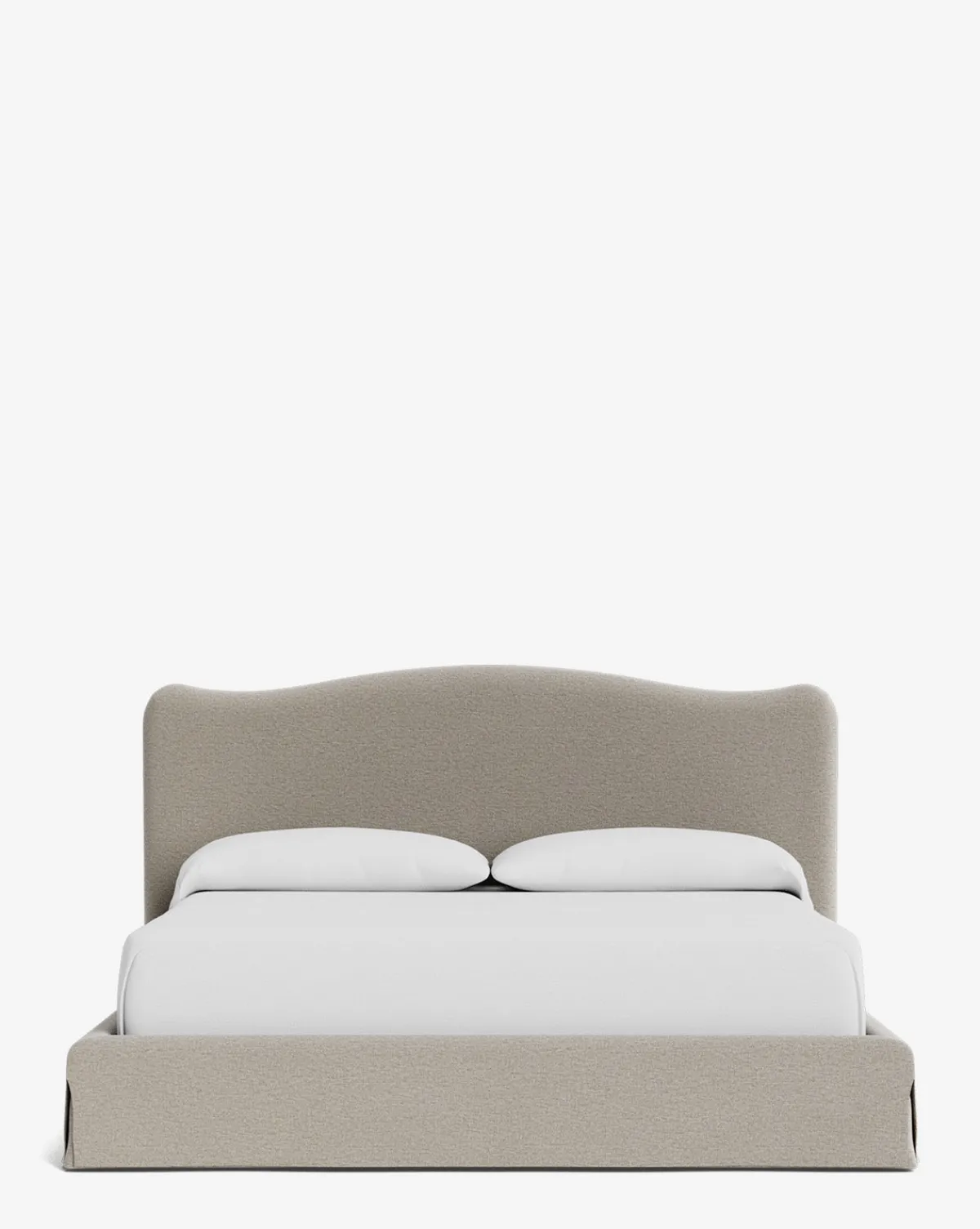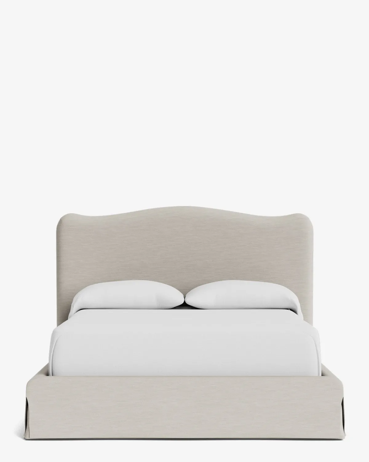 Our Henrietta Bed is a stately but neutral upholstered bed to provide an anchoring point for your bedroom styling. With a subtly traditional curved design in the headboard, this upholstered bed is versatile and refreshing.