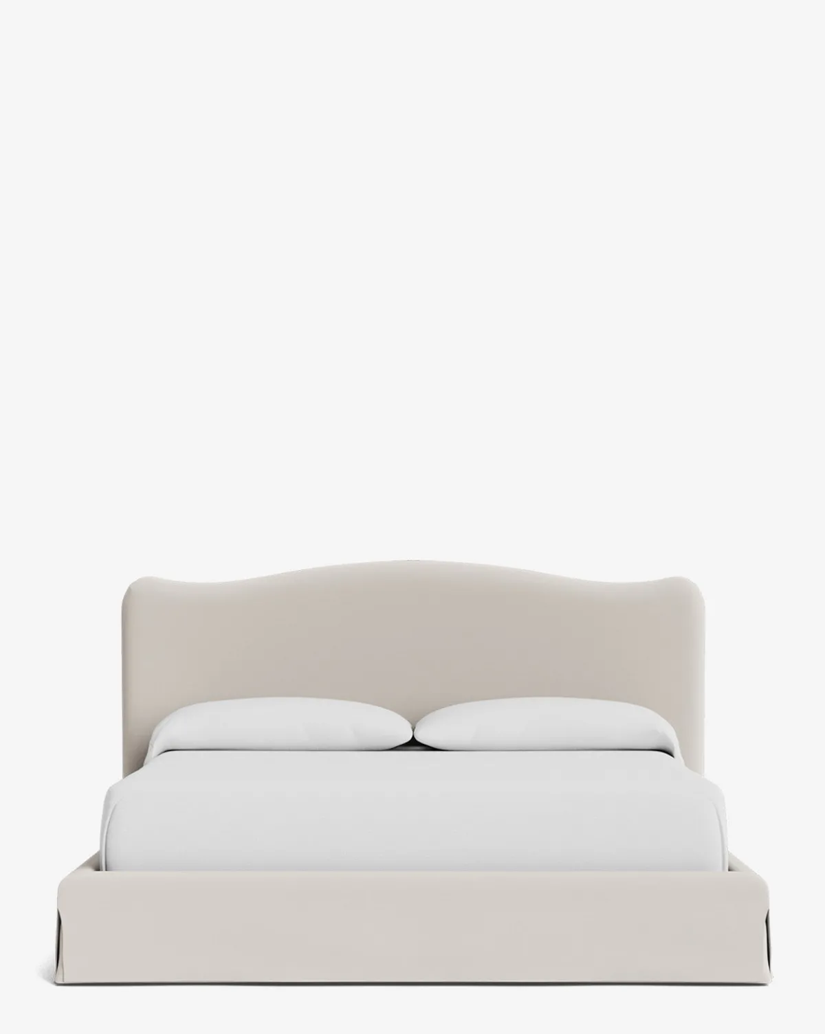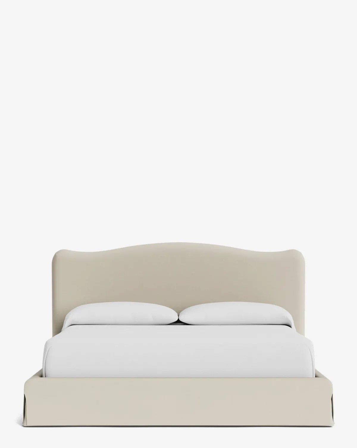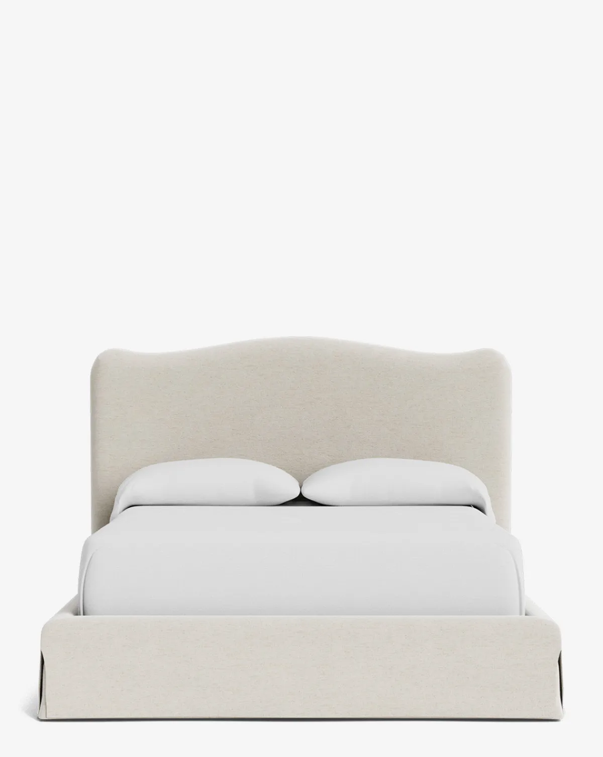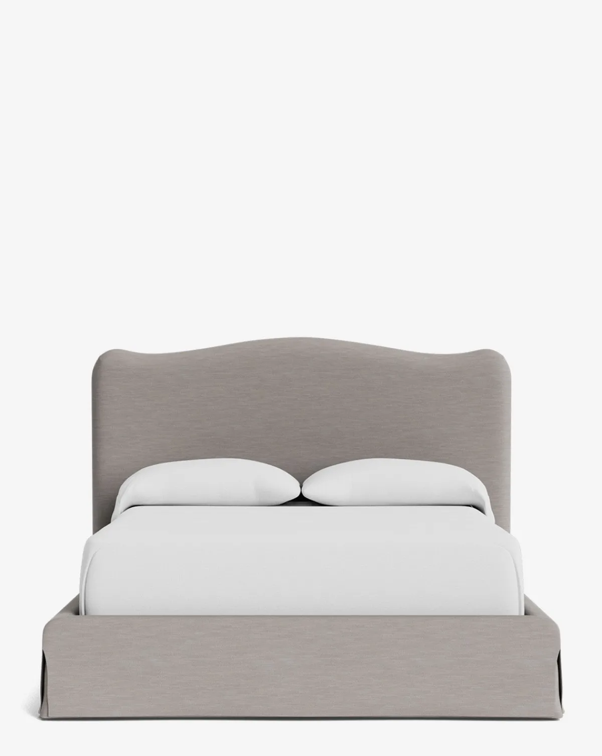 Our Henrietta Bed is a stately but neutral upholstered bed to provide an anchoring point for your bedroom styling. With a subtly traditional curved design in the headboard, this upholstered bed is versatile and refreshing.