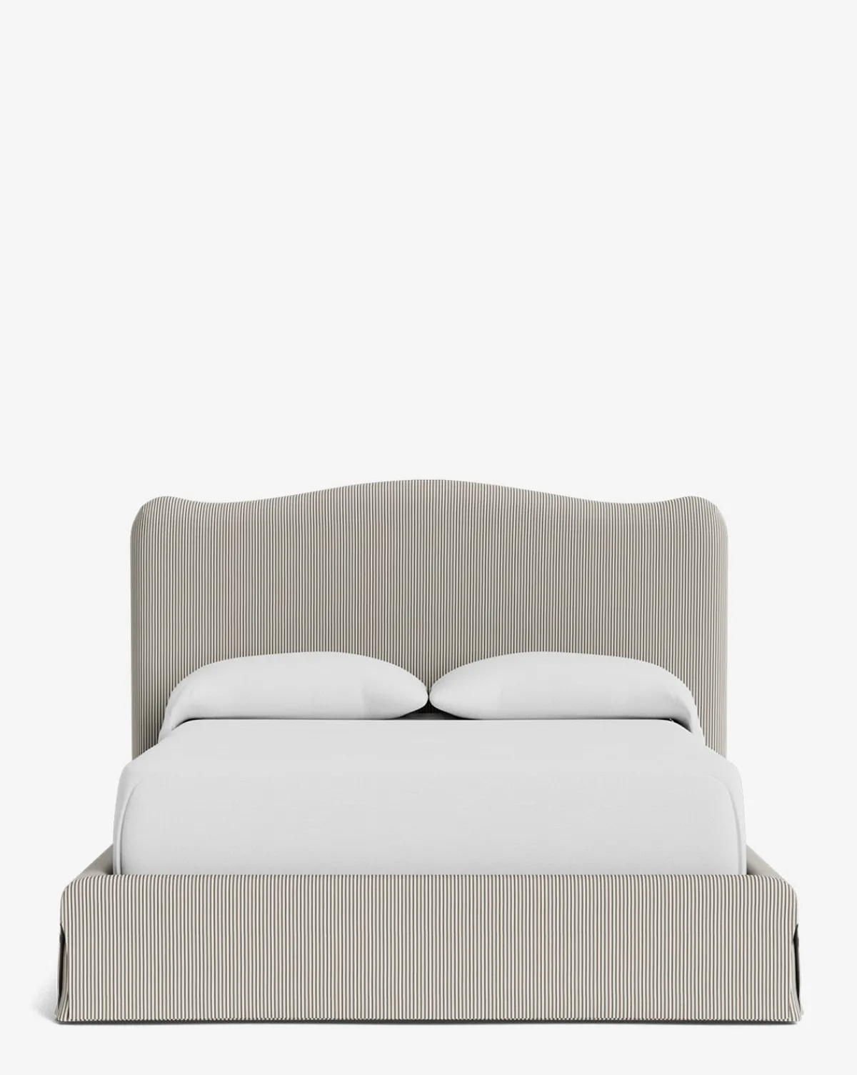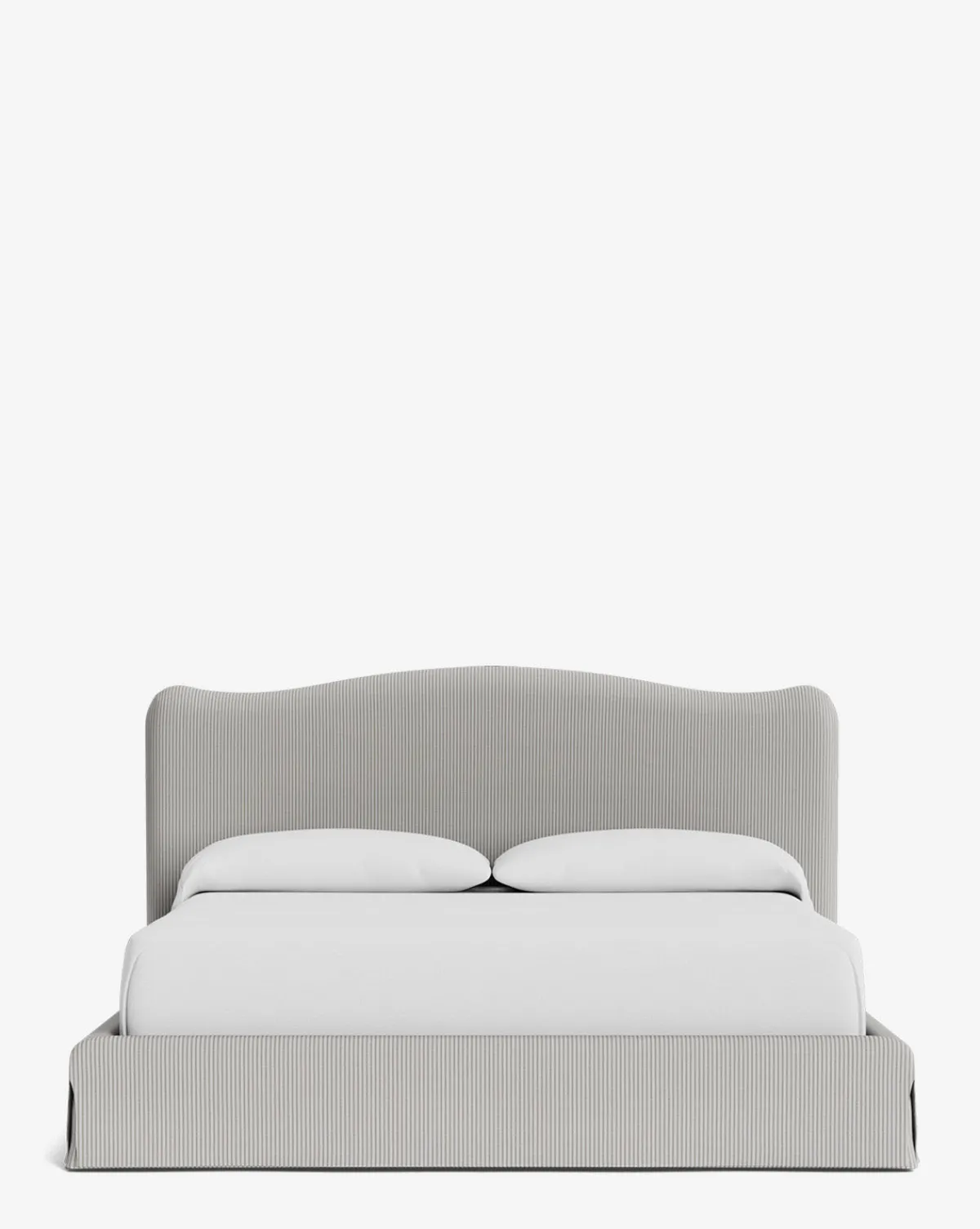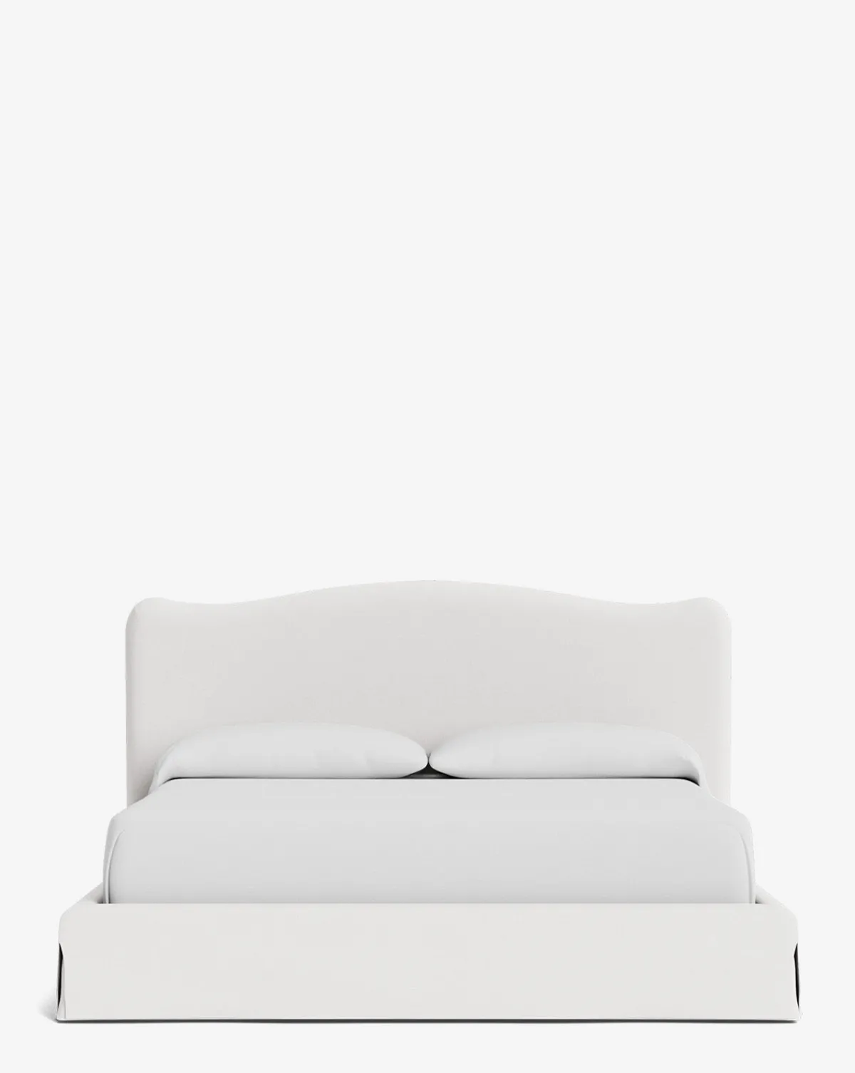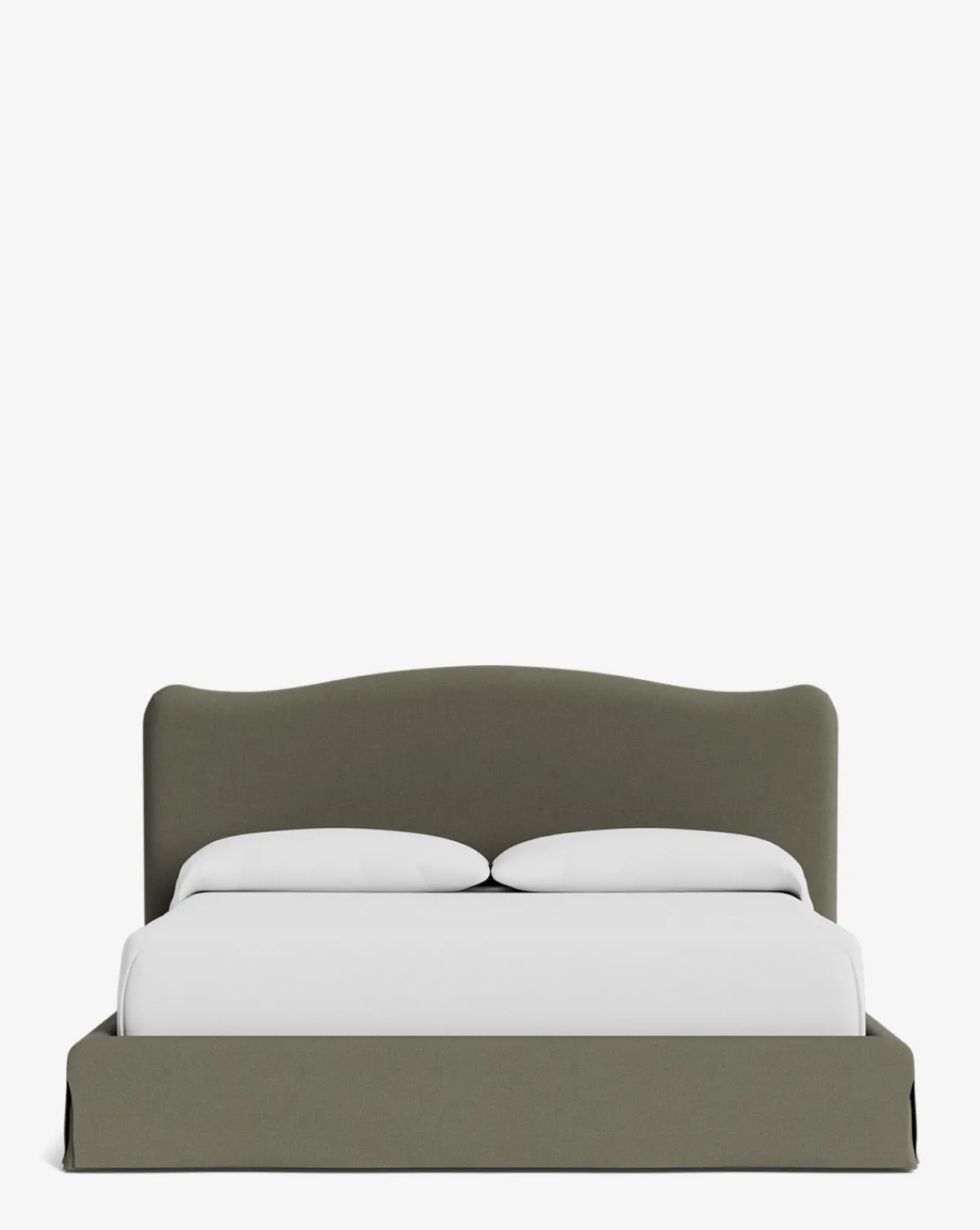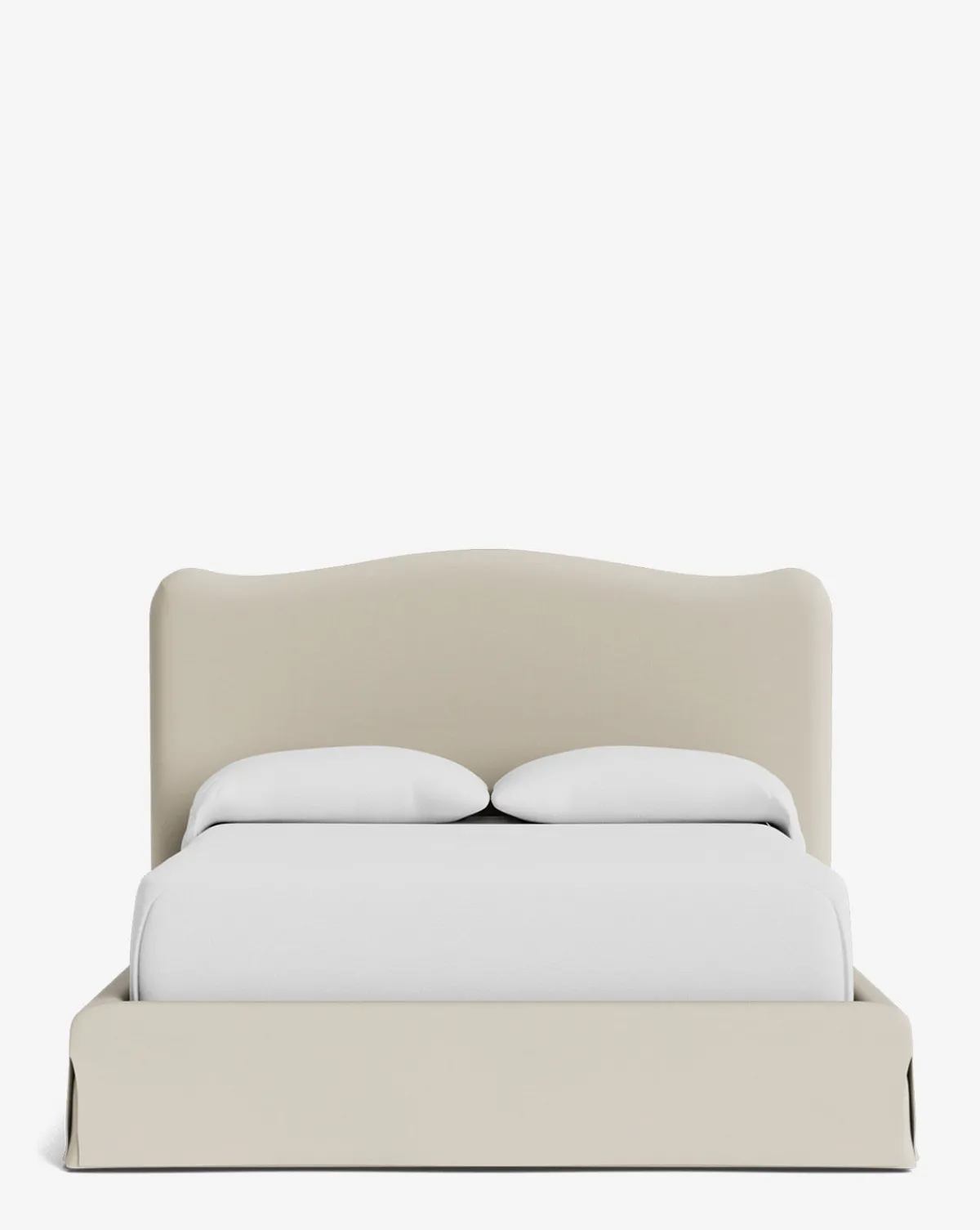 Our Henrietta Bed is a stately but neutral upholstered bed to provide an anchoring point for your bedroom styling. With a subtly traditional curved design in the headboard, this upholstered bed is versatile and refreshing.