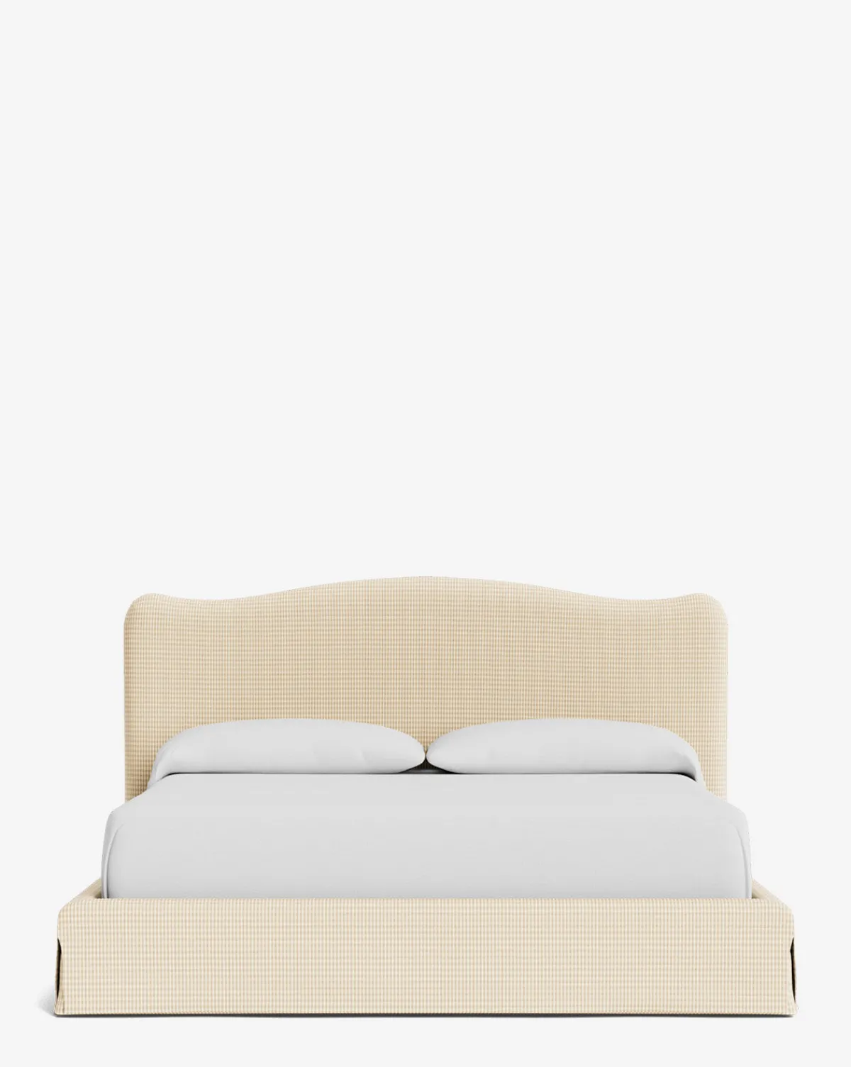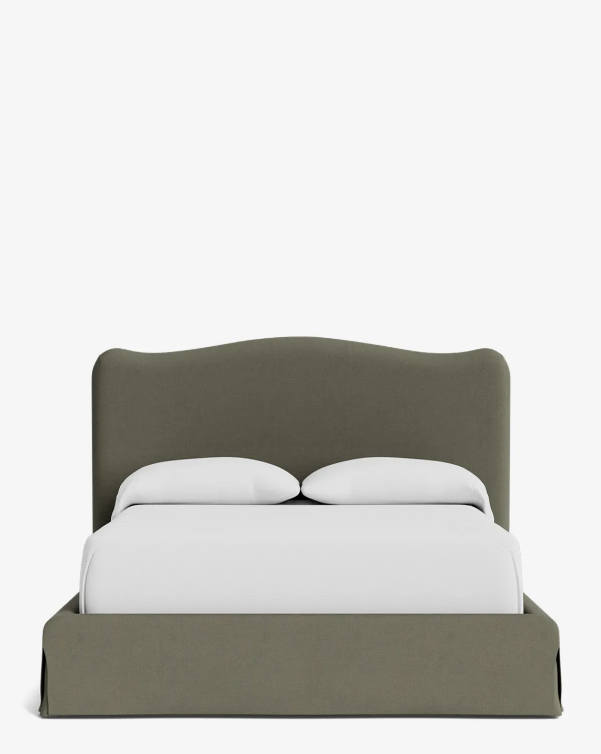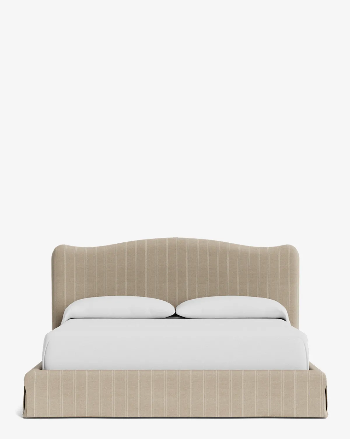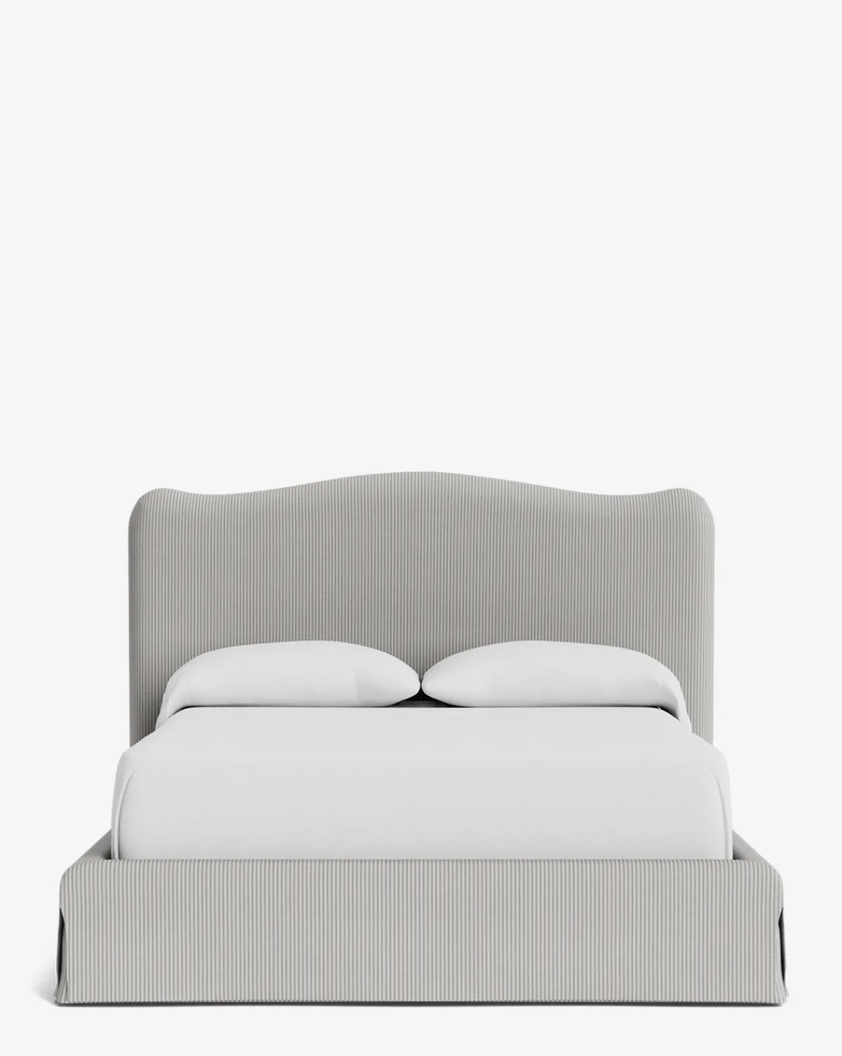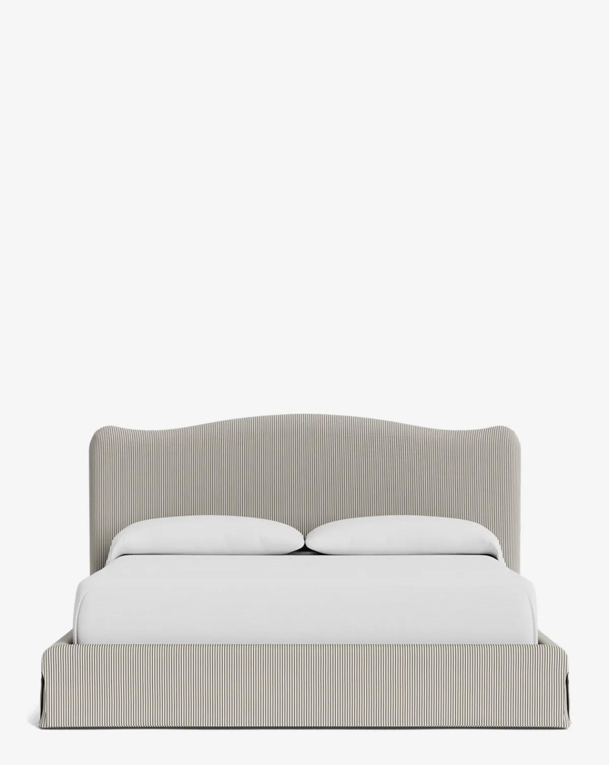 Our Henrietta Bed is a stately but neutral upholstered bed to provide an anchoring point for your bedroom styling. With a subtly traditional curved design in the headboard, this upholstered bed is versatile and refreshing.