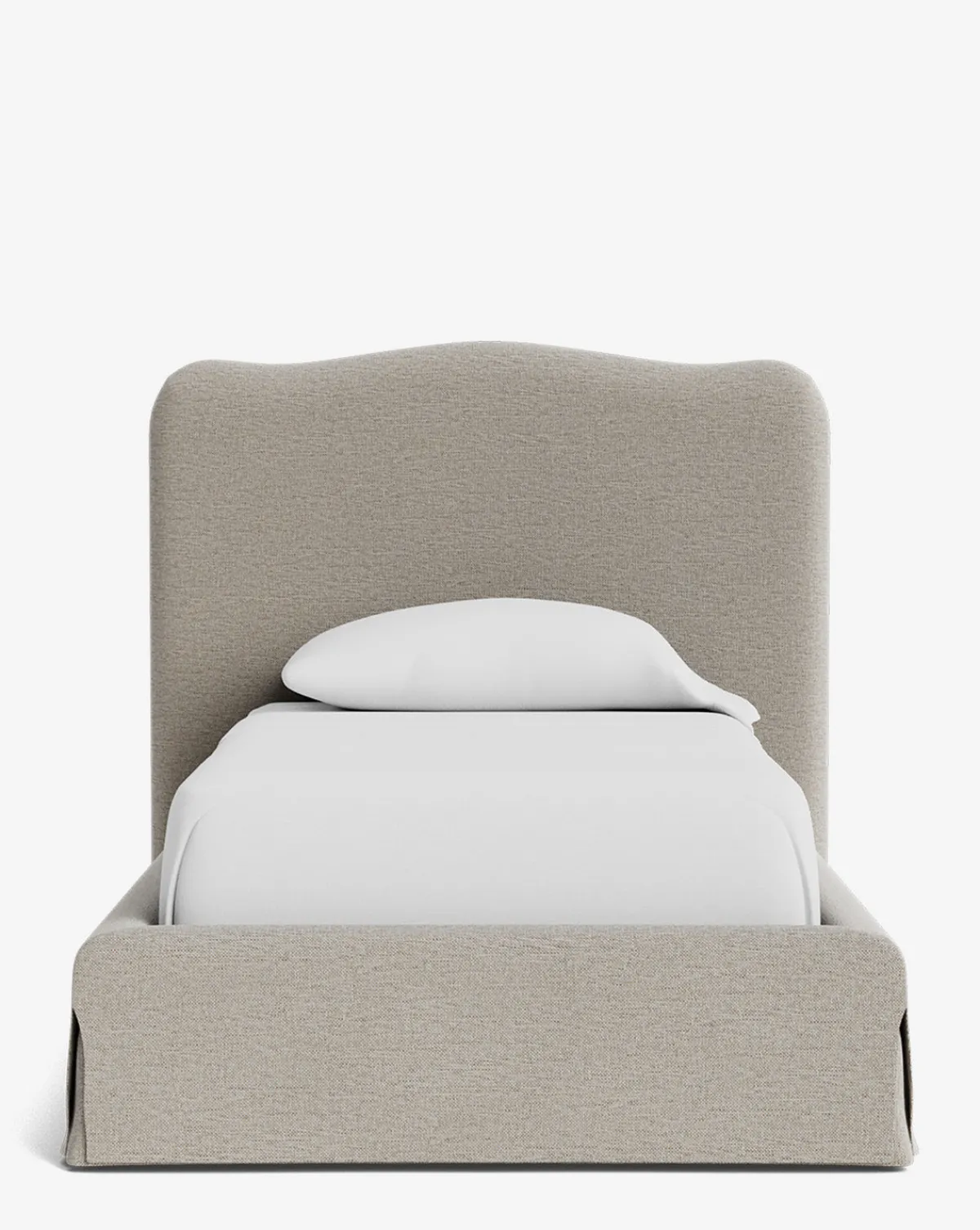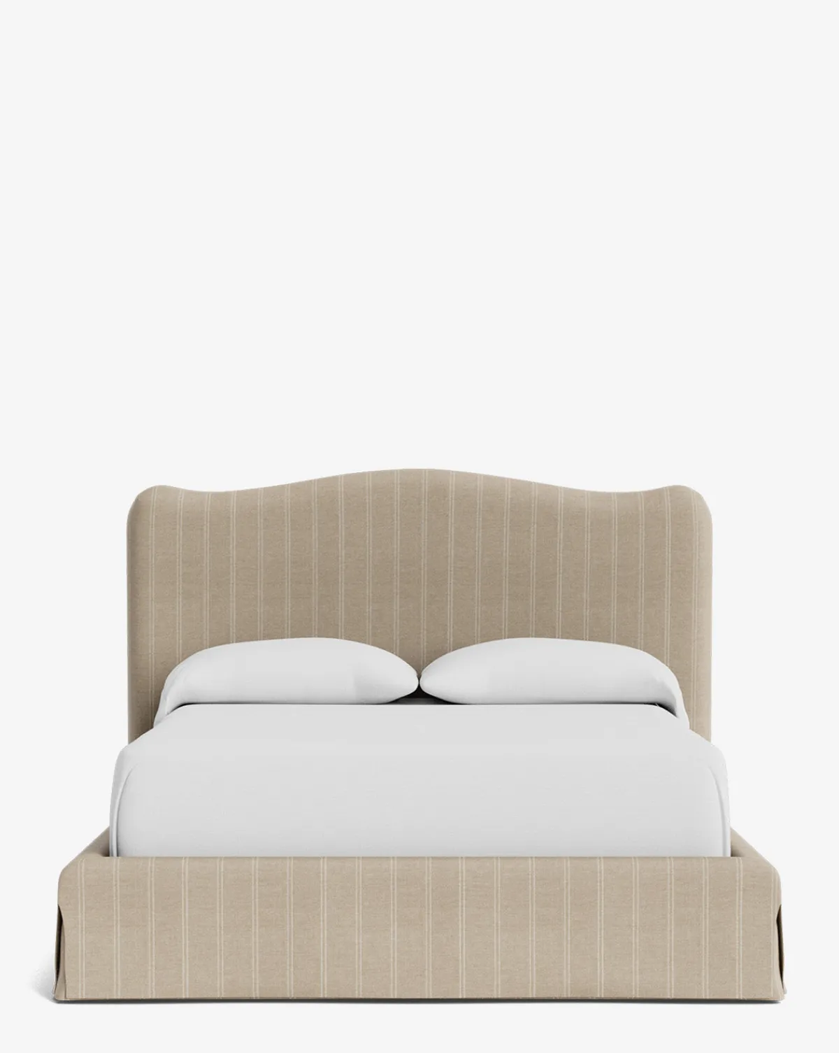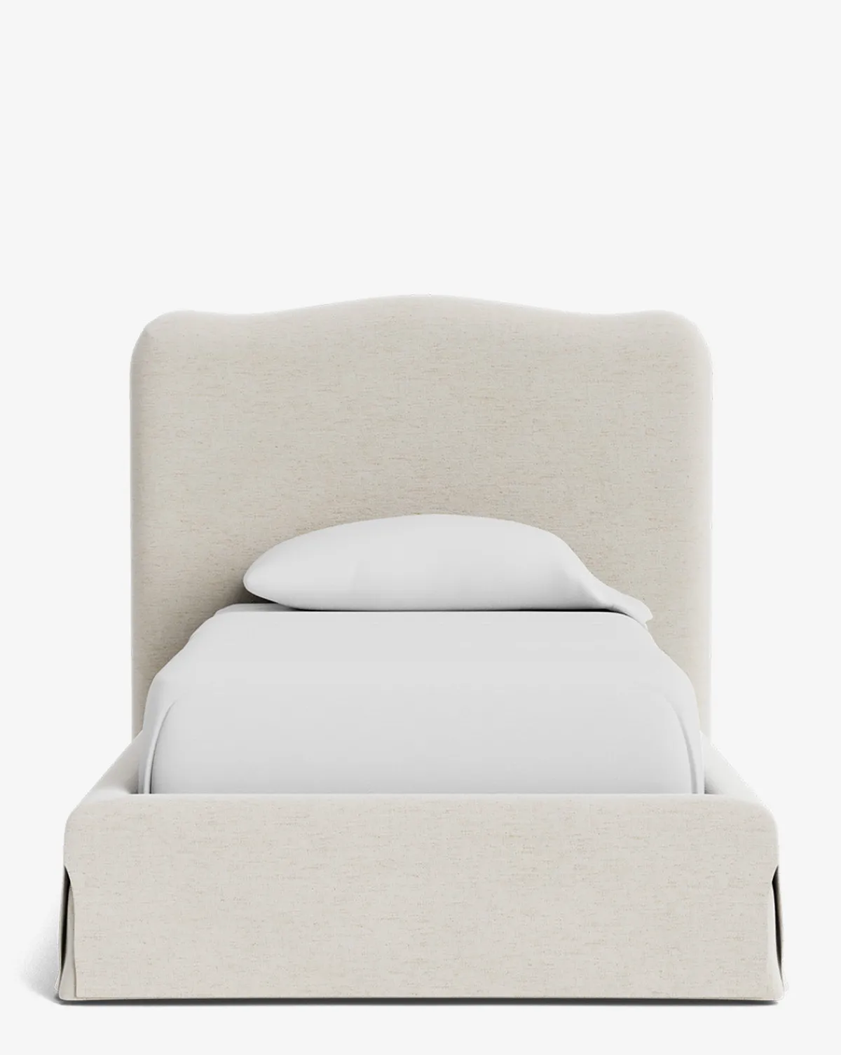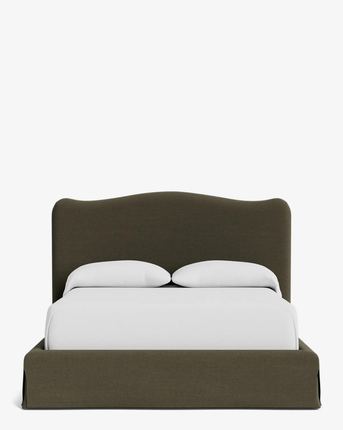 Our Henrietta Bed is a stately but neutral upholstered bed to provide an anchoring point for your bedroom styling. With a subtly traditional curved design in the headboard, this upholstered bed is versatile and refreshing.
