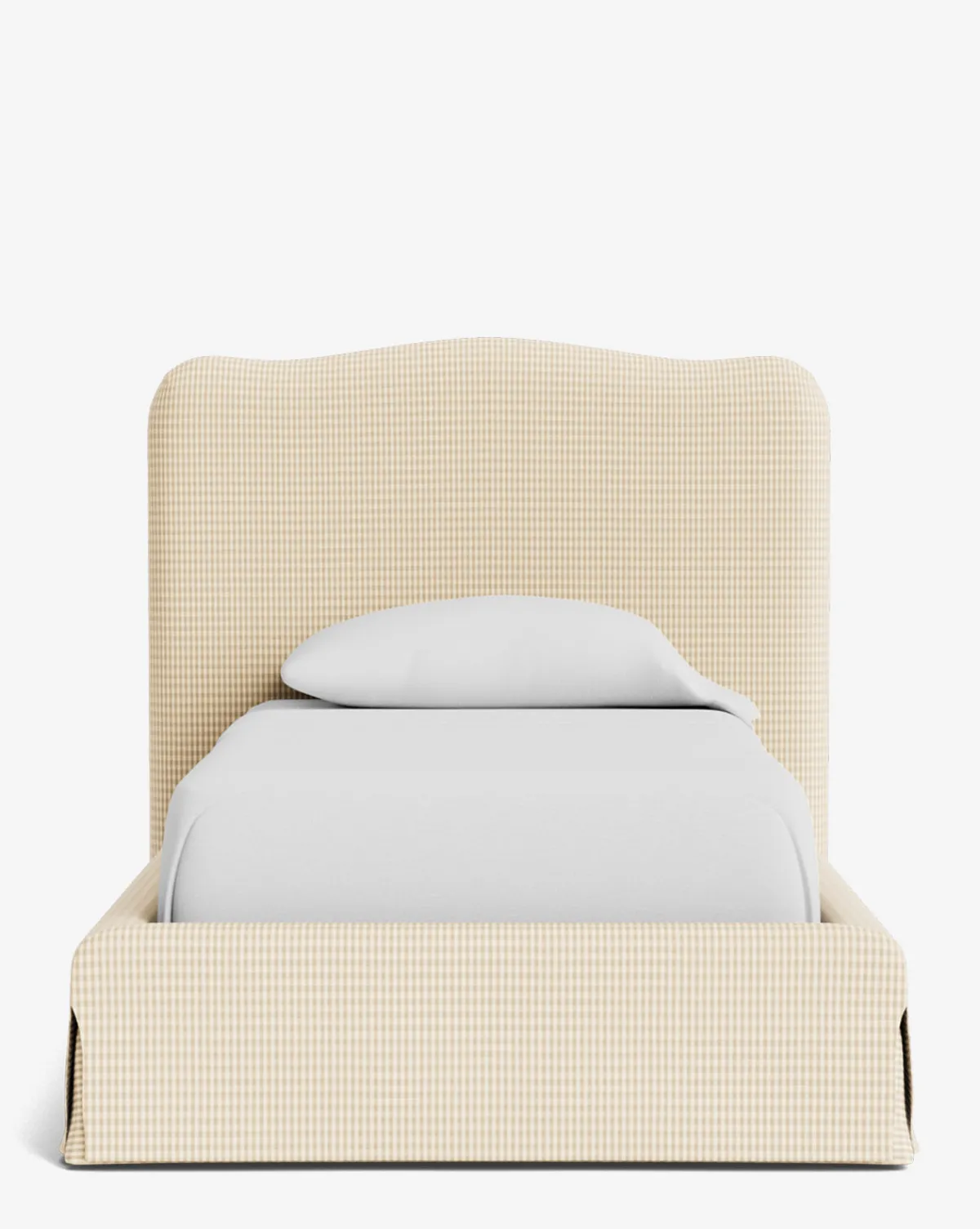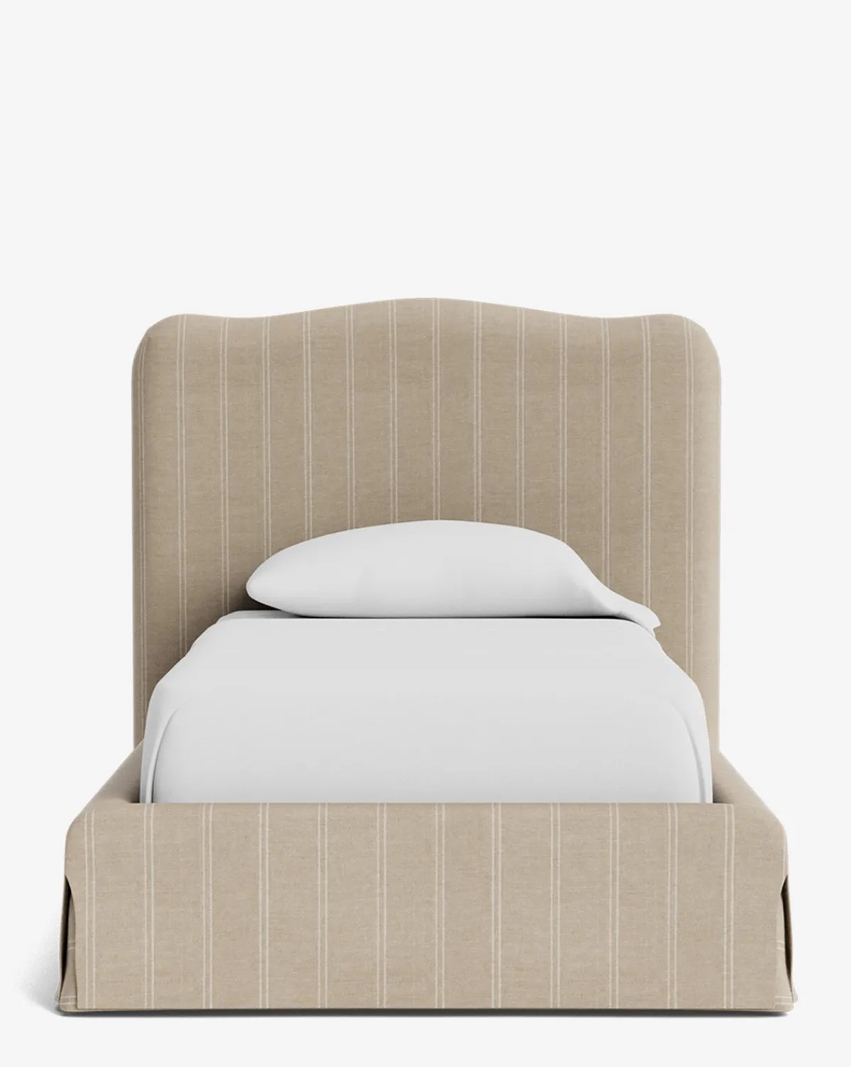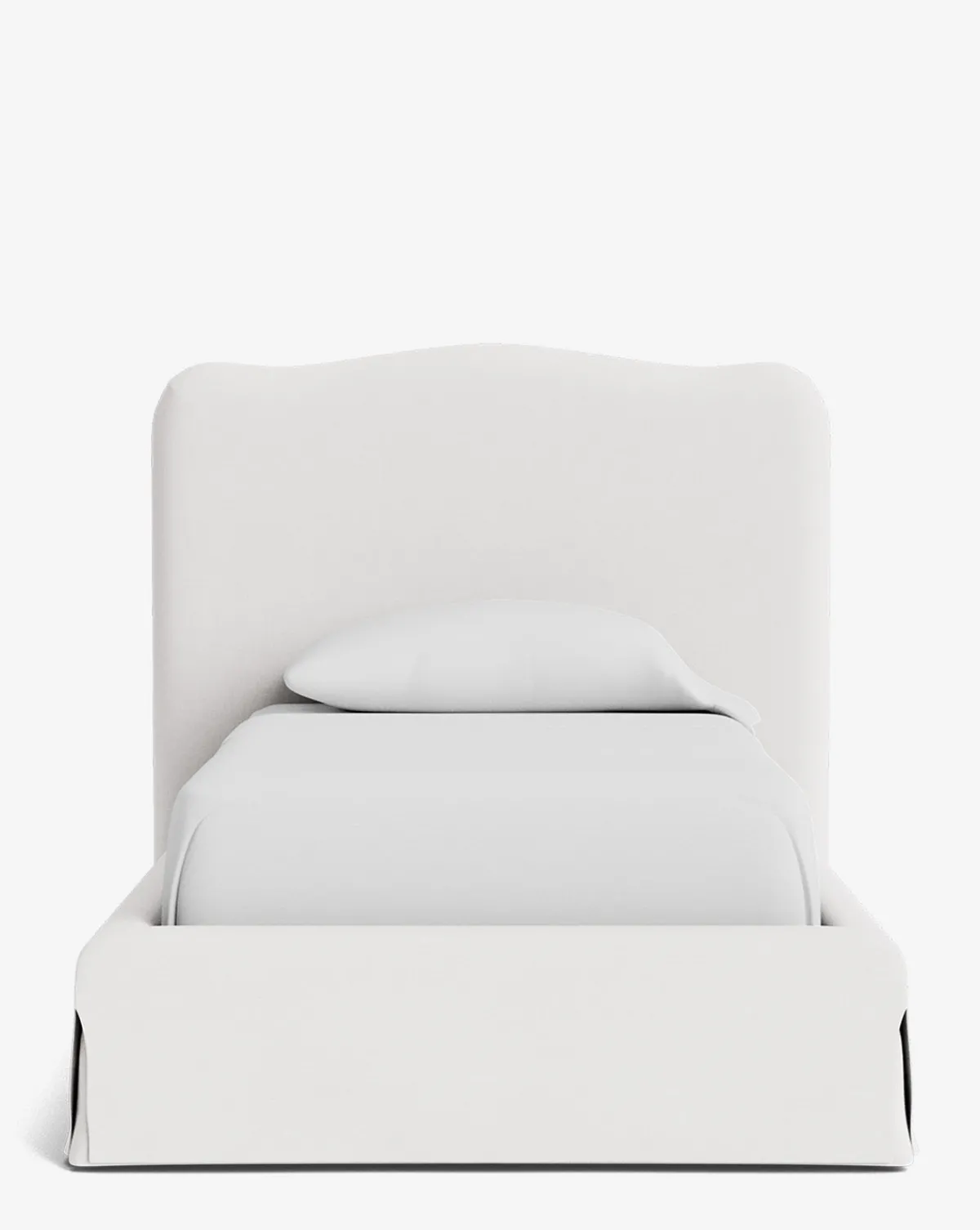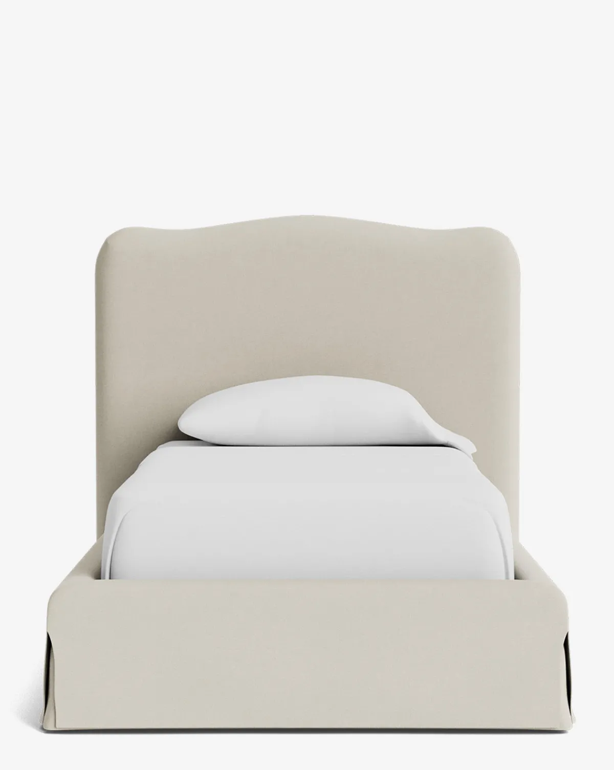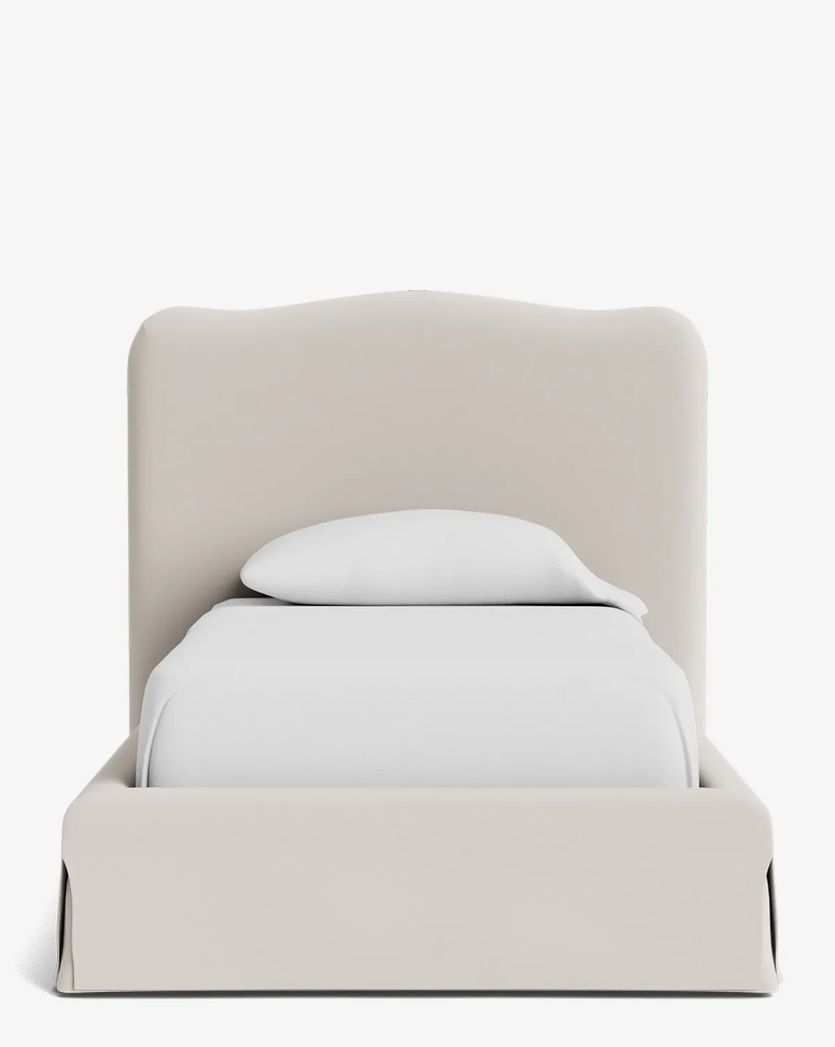 Our Henrietta Bed is a stately but neutral upholstered bed to provide an anchoring point for your bedroom styling. With a subtly traditional curved design in the headboard, this upholstered bed is versatile and refreshing.