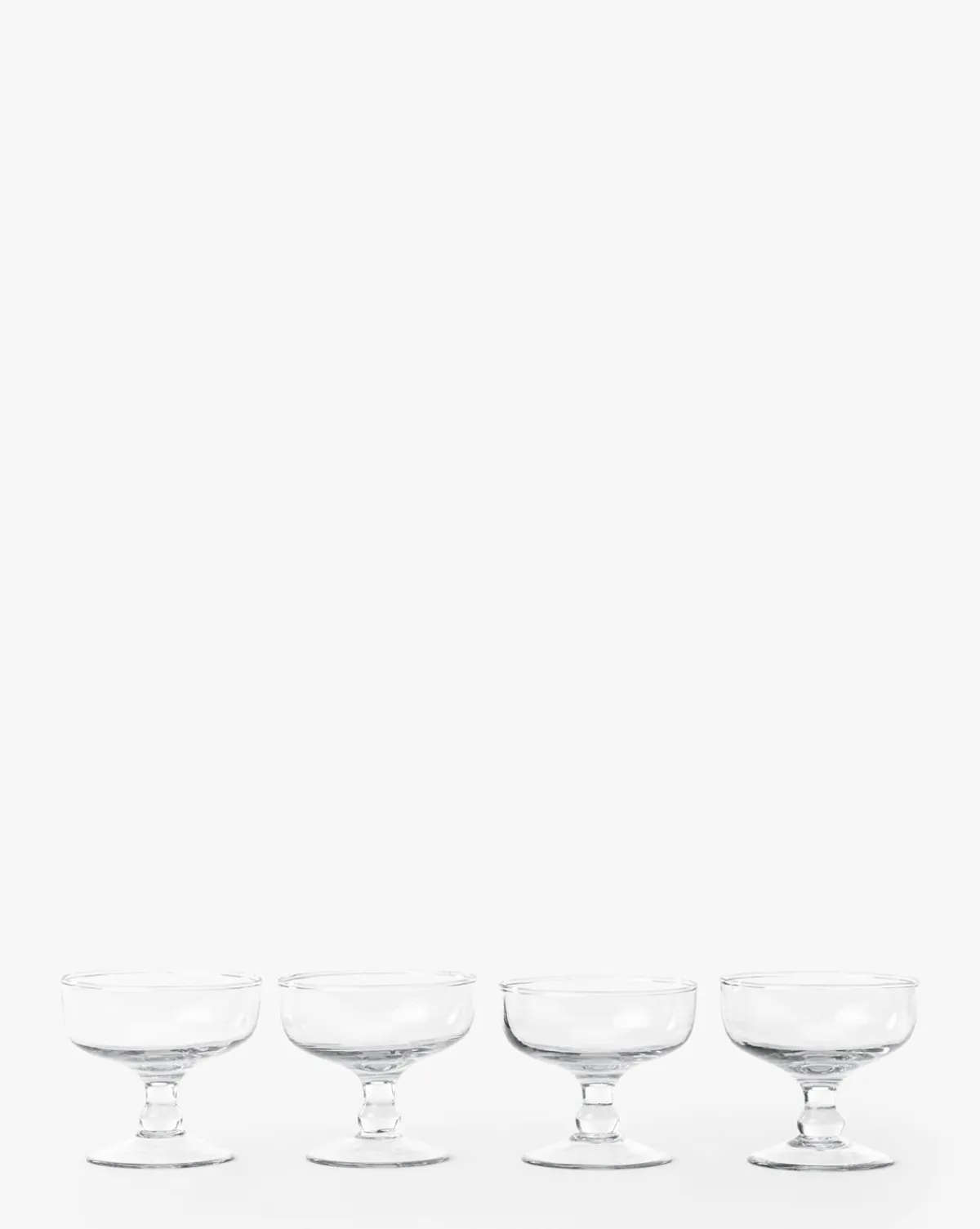 A contemporary approach to dining classics, our Keely Coupe sports an organic shape and adds character to the table. Made of recycled glass and dishwasher safe, the ornate coupe glasses are durable and perfect for hosted events.
