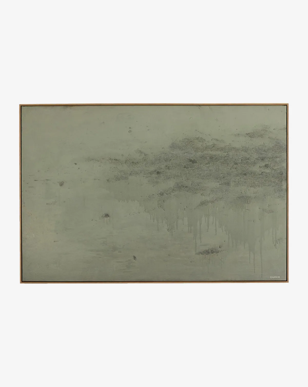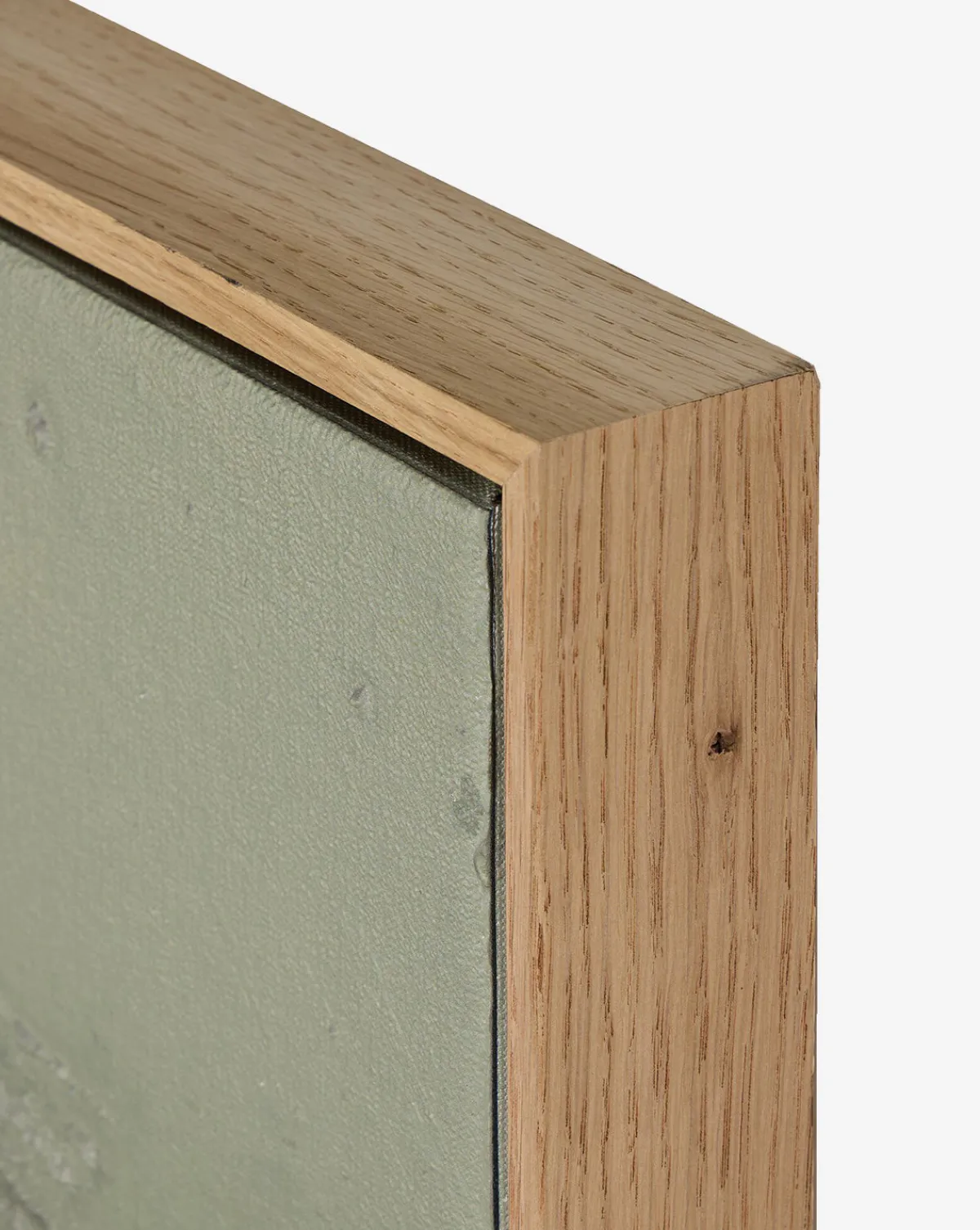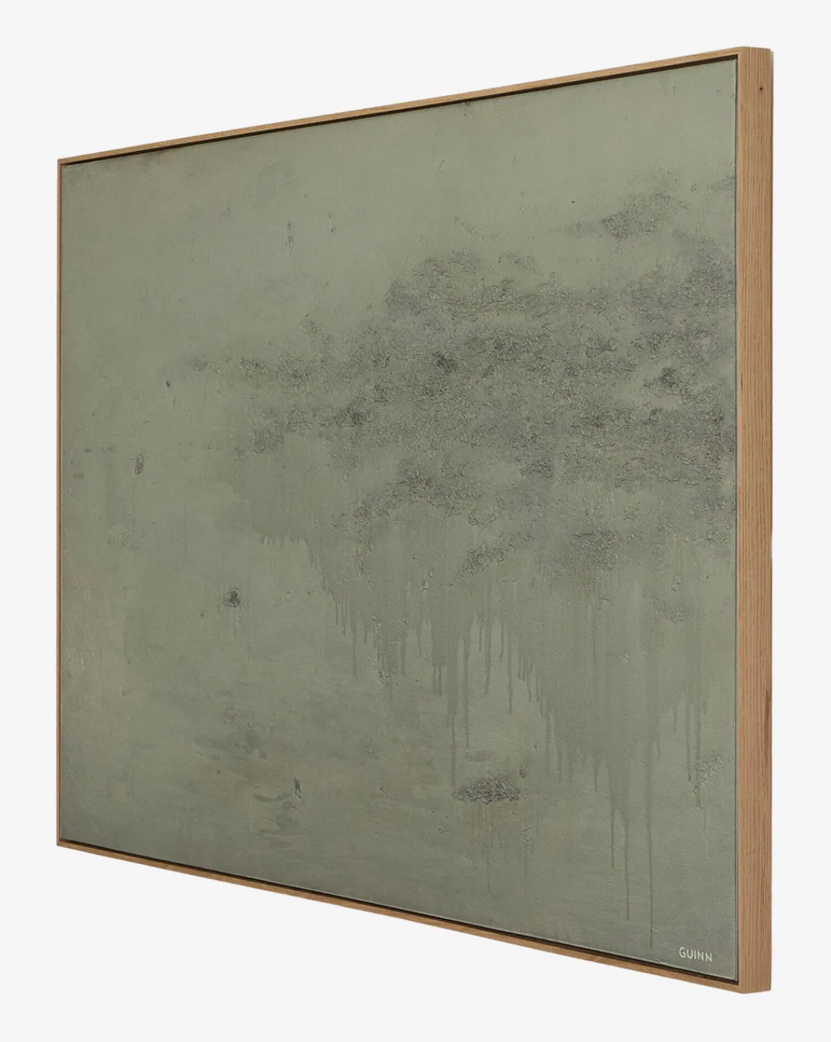 With its textural depth and serene presence, Tyler Guinn’s Knowledge of The Stream enhances the atmosphere of any room with its thoughtful abstract design. The vertical grain white oak floater frame brings a natural elegance that beautifully complements the composition’s contemporary aesthetic.