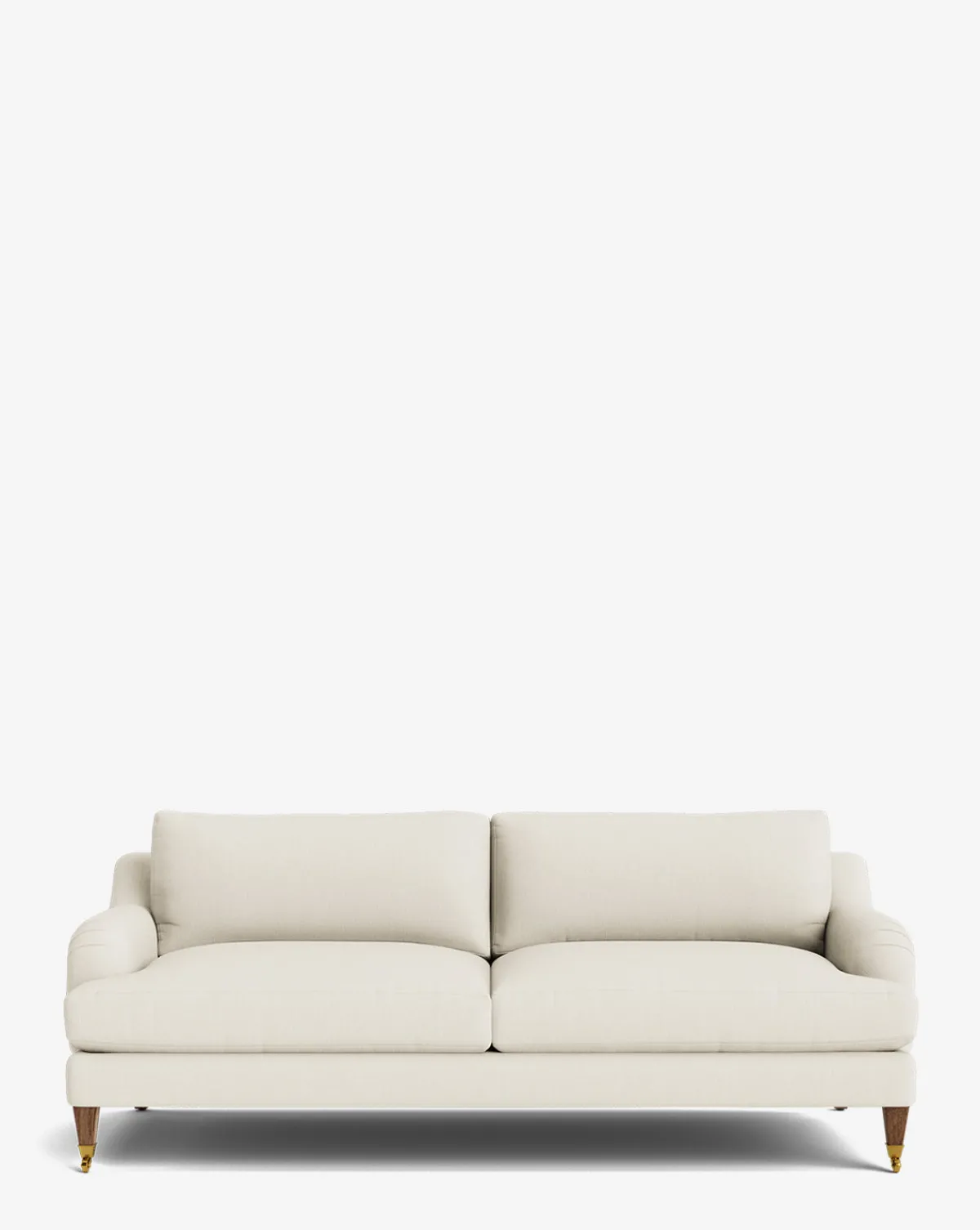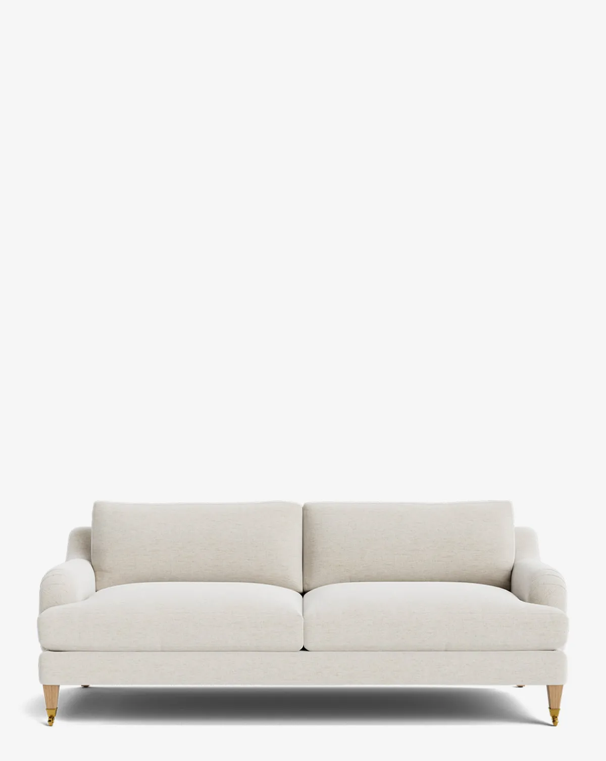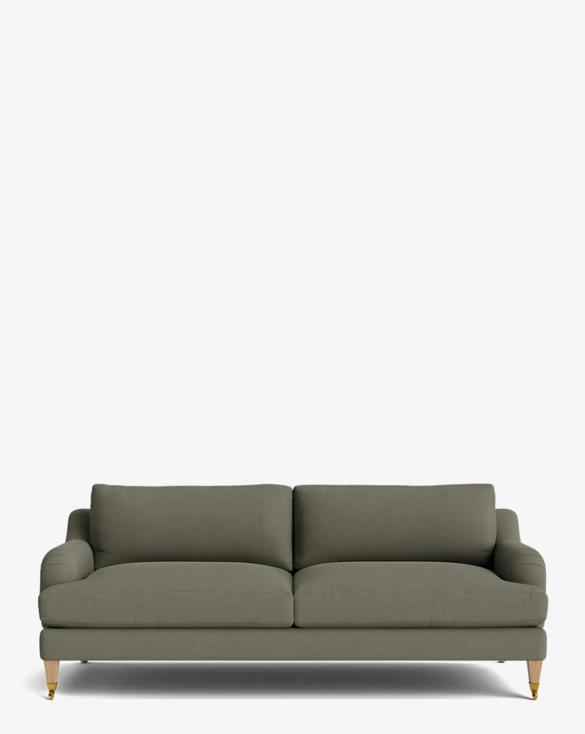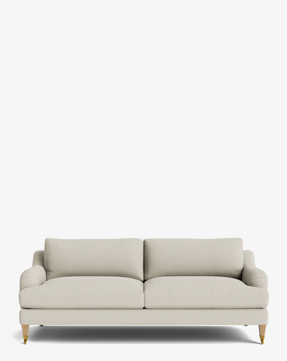Our Lucille English Roll Arm Sofa is a modern approach to a traditional design. Crafted with luxurious comfort in mind, its classic format features a down wrapped cushion for a perfectly stuffed look and feel. A bench-made alder wood frame adds durability to the design, as four oak wood tapered legs give this sofa a stately presence. Completely customizable in a wide array of fabrics, make the piece your own with either a soft linen, or high performance crypton.