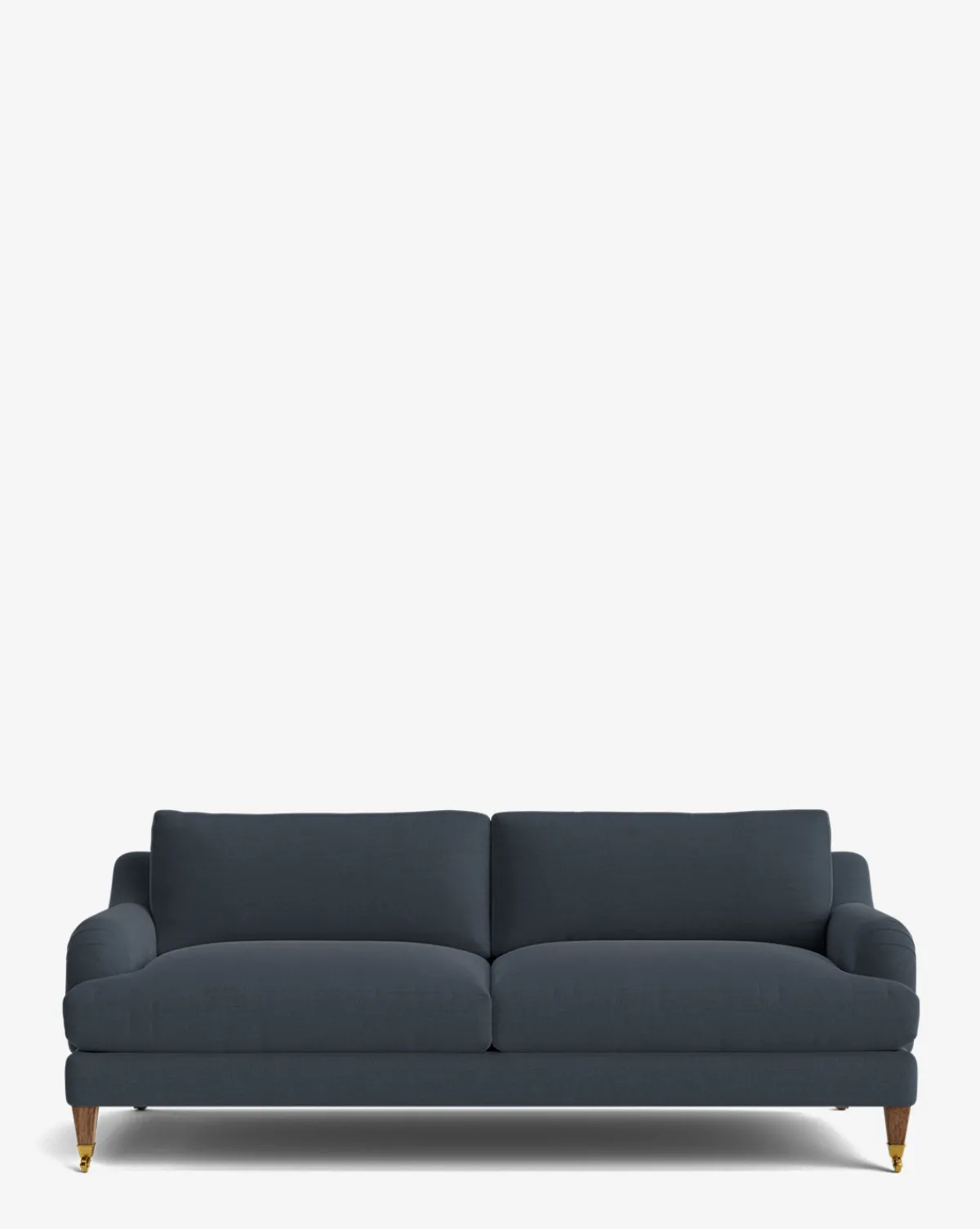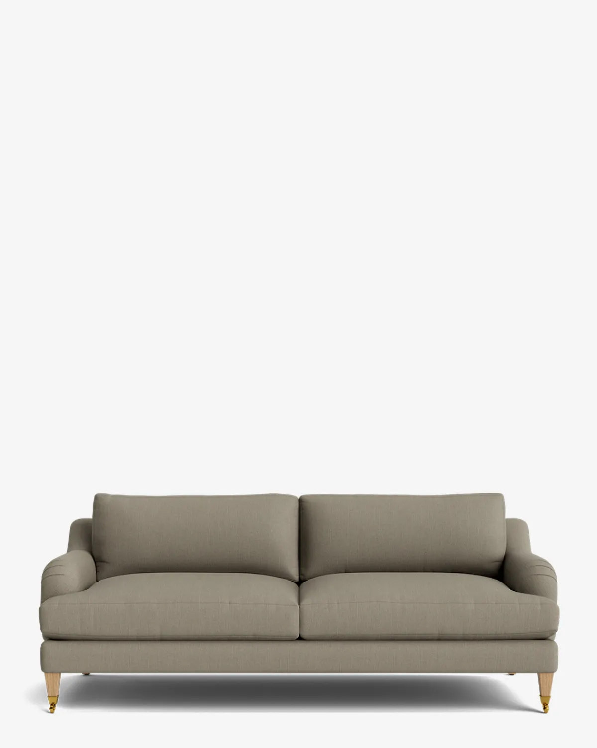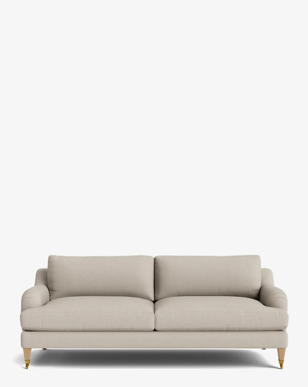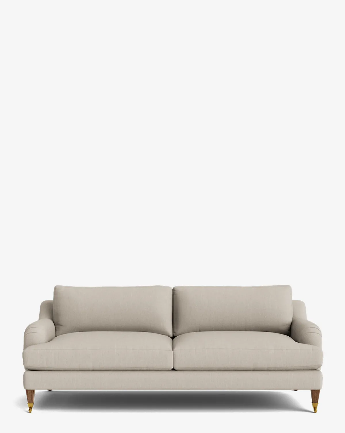 Our Lucille English Roll Arm Sofa is a modern approach to a traditional design. Crafted with luxurious comfort in mind, its classic format features a down wrapped cushion for a perfectly stuffed look and feel. A bench-made alder wood frame adds durability to the design, as four oak wood tapered legs give this sofa a stately presence. Completely customizable in a wide array of fabrics, make the piece your own with either a soft linen, or high performance crypton.