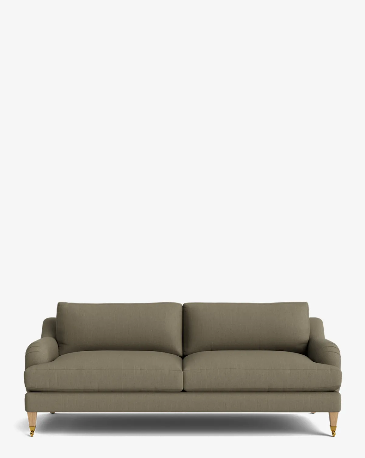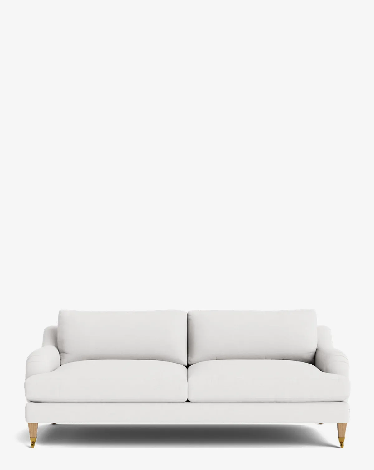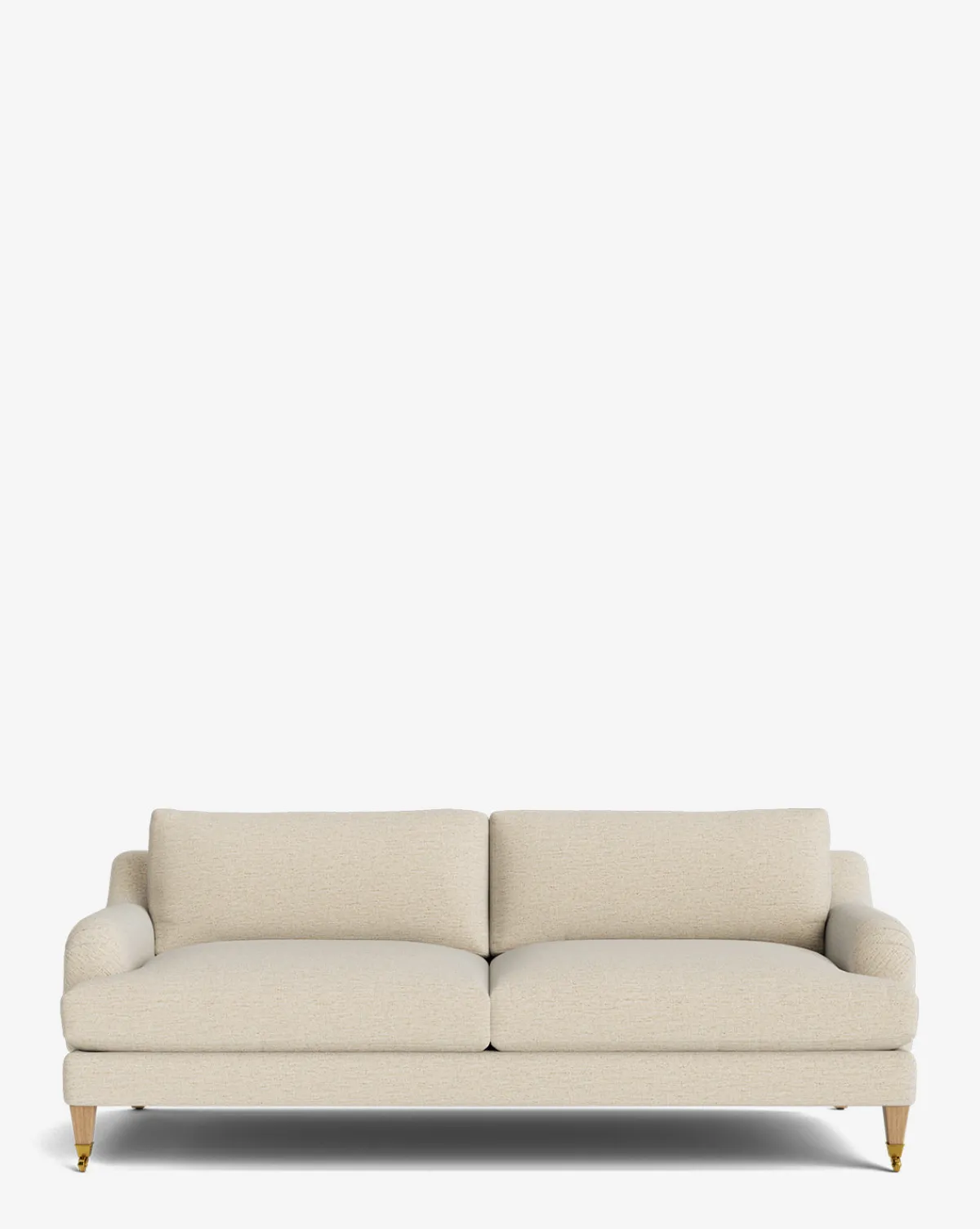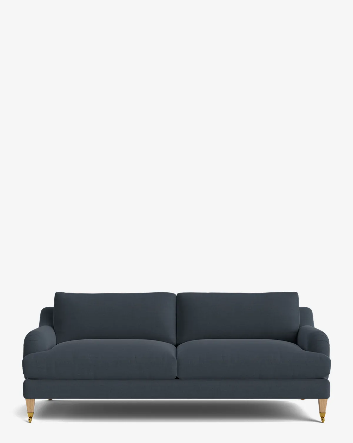 Our Lucille English Roll Arm Sofa is a modern approach to a traditional design. Crafted with luxurious comfort in mind, its classic format features a down wrapped cushion for a perfectly stuffed look and feel. A bench-made alder wood frame adds durability to the design, as four oak wood tapered legs give this sofa a stately presence. Completely customizable in a wide array of fabrics, make the piece your own with either a soft linen, or high performance crypton.