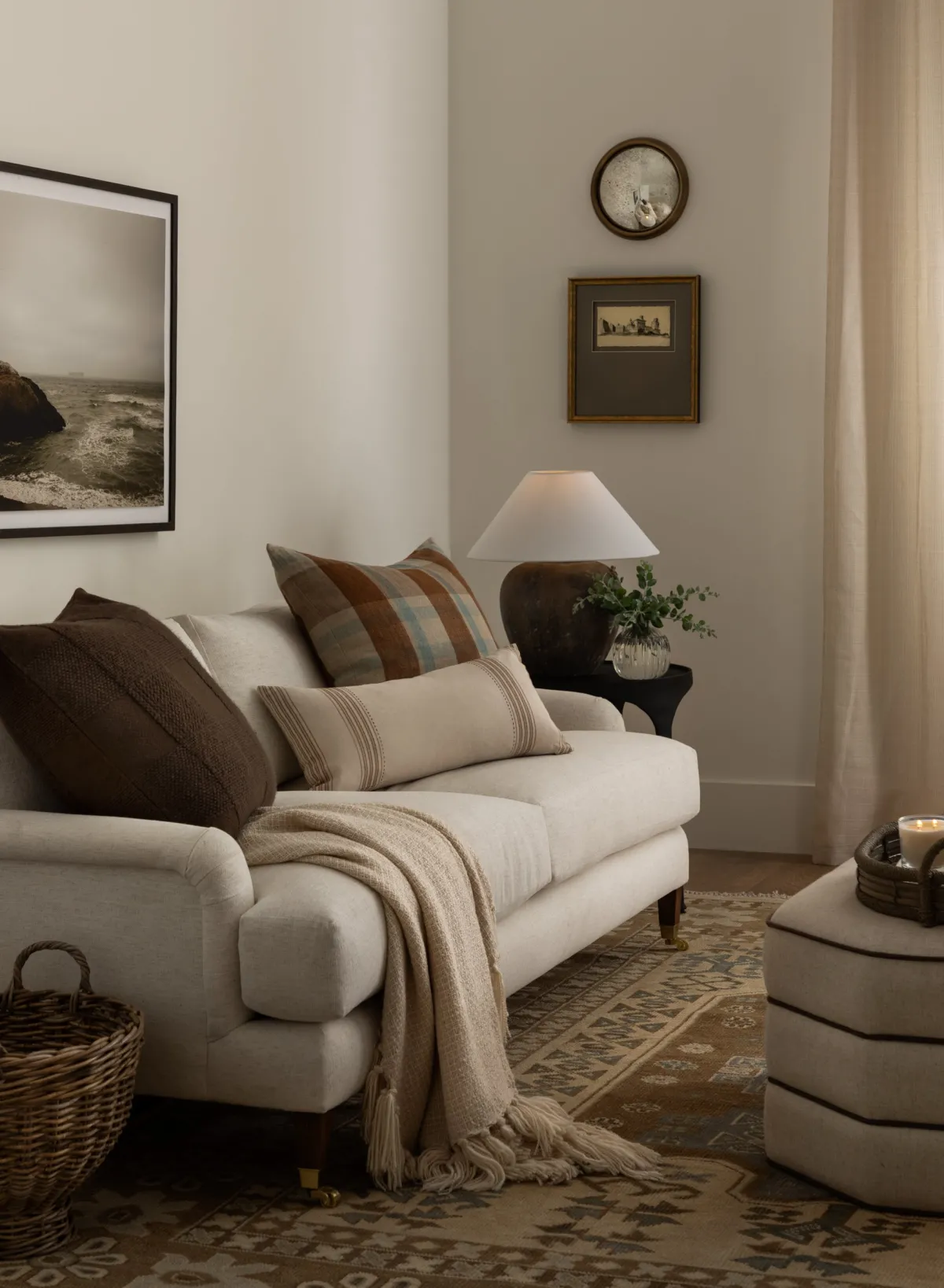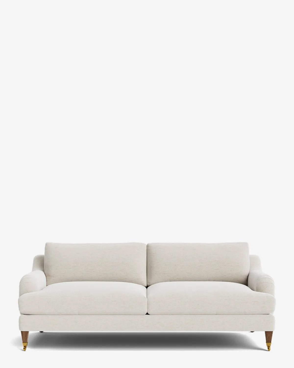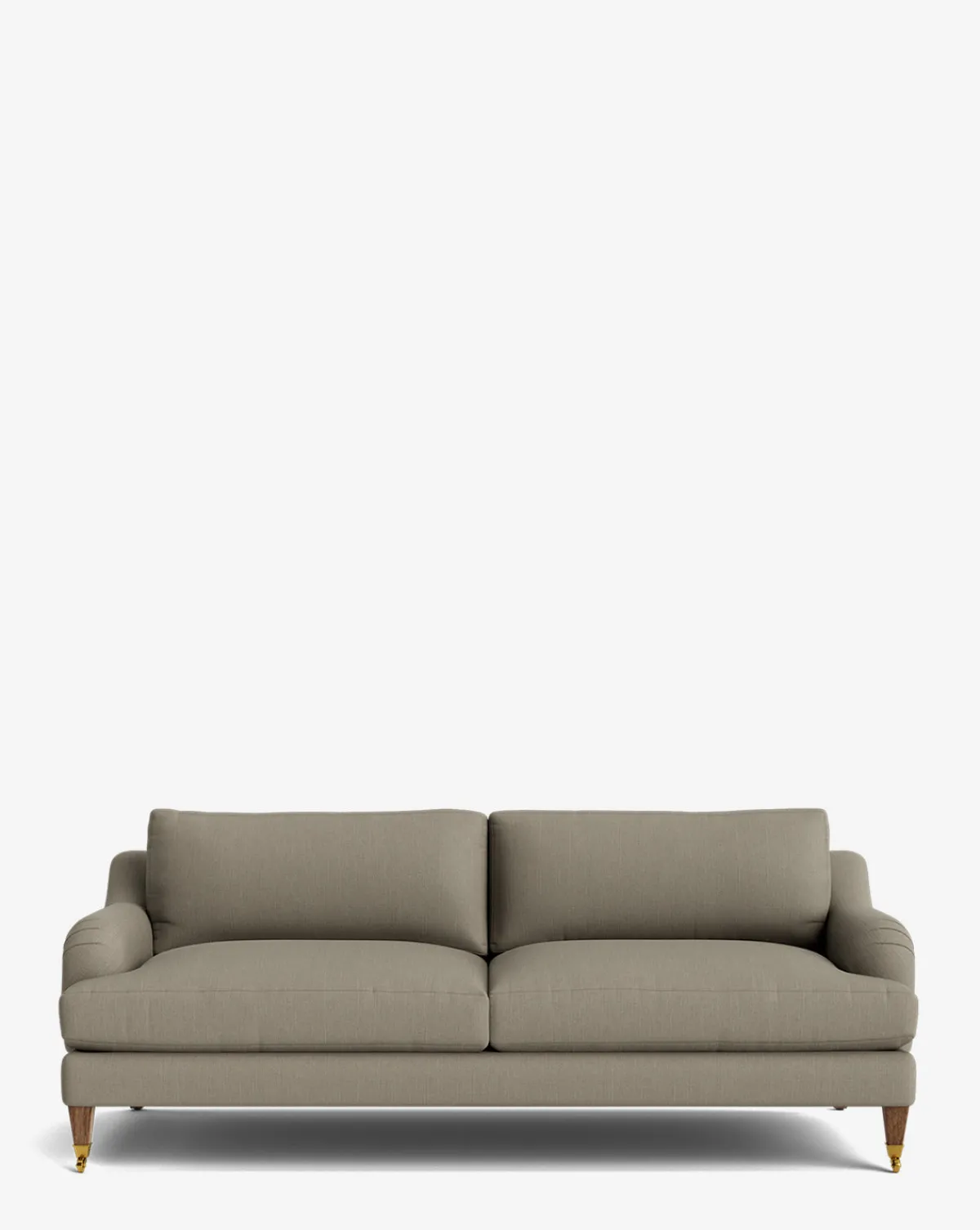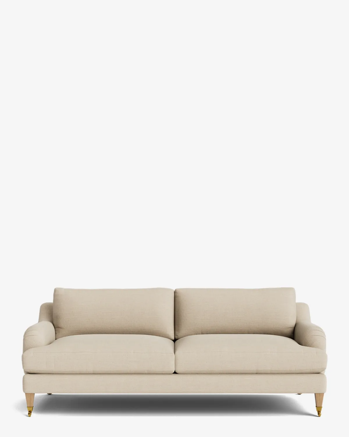 Our Lucille English Roll Arm Sofa is a modern approach to a traditional design. Crafted with luxurious comfort in mind, its classic format features a down wrapped cushion for a perfectly stuffed look and feel. A bench-made alder wood frame adds durability to the design, as four oak wood tapered legs give this sofa a stately presence. Completely customizable in a wide array of fabrics, make the piece your own with either a soft linen, or high performance crypton.