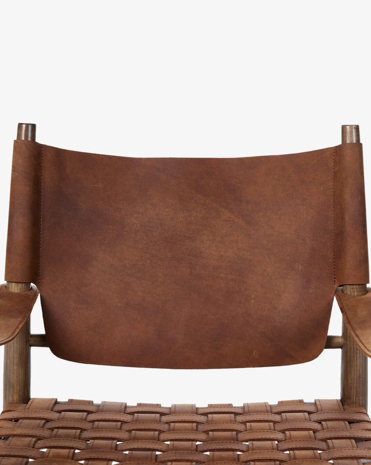 Rich with character, the vintage-inspired Maris Lounge Chair offers an inviting warmth to your living spaces. Expertly crafted with solid ash and top-grain leather, it is as beautiful as it is durable. Its supportive woven seat provides a comfortable sit, contributing to its refined yet laid-back appeal.