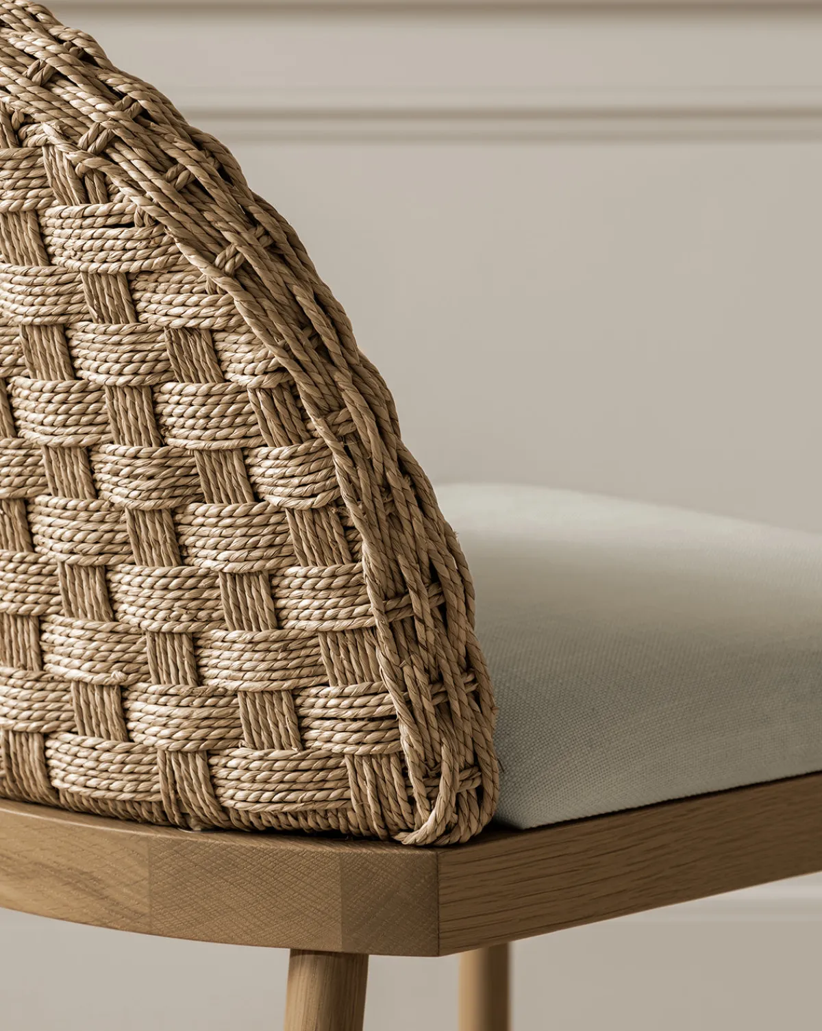 - Solid Oak Frame, Water Hyacinth Back, Foam FillFabric Description:
