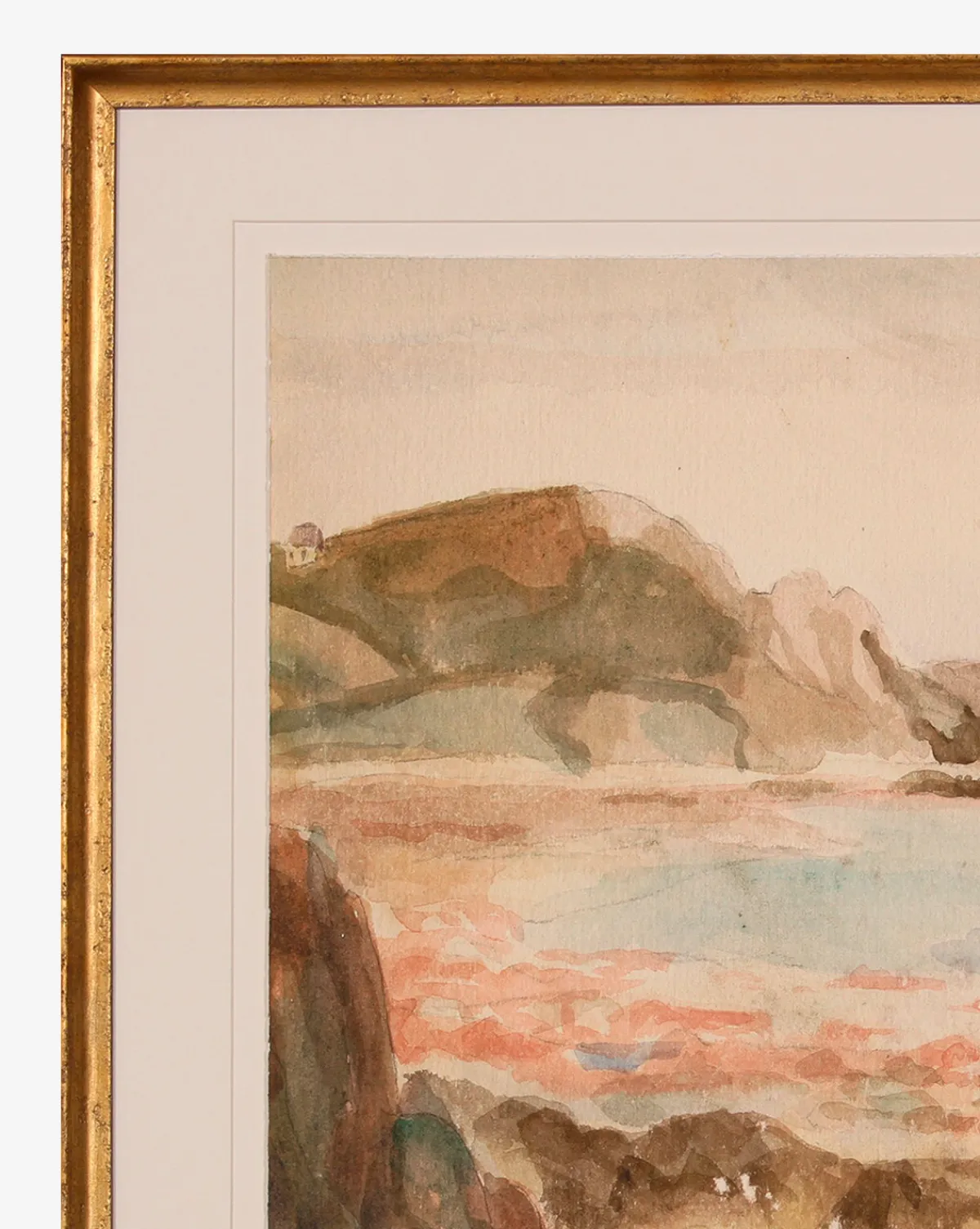 With artist enhanced texture, the serene mountain lake scene of our Mountain Reserve piece features neutral tones creating its beautiful mountainous display. Gray shadows on the face of the rock bring depth, as peachy pink sand adds just the right touch of warmth.