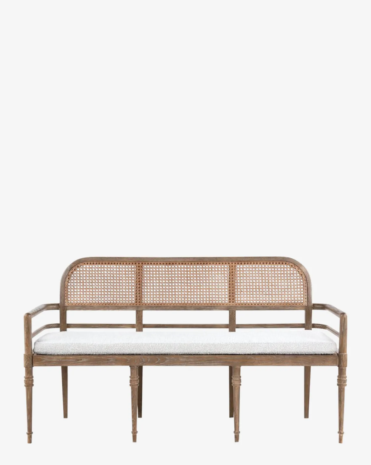 While drawing inspiration from traditional design, the Nestor Bench makes a modern statement. Its oak frame and tall back give the bench versatility and visual interest, while the off-white boucle fabric cushion makes it an inviting seat.