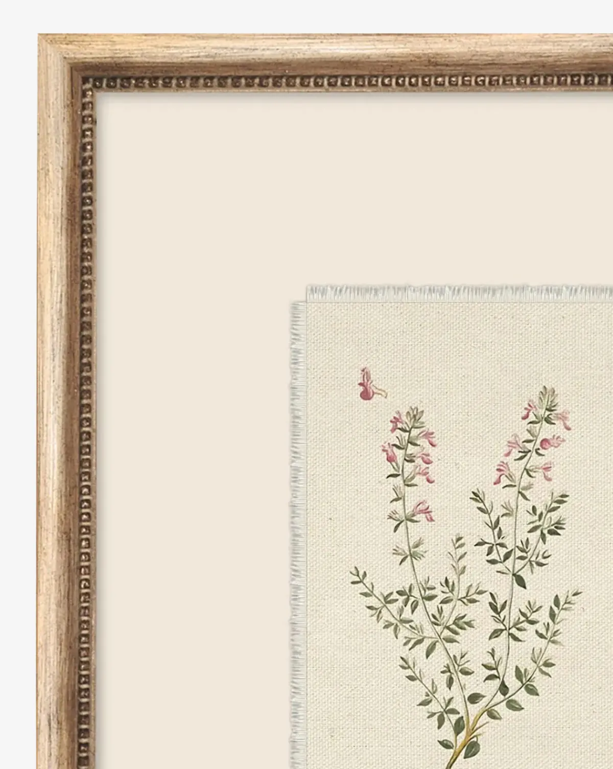 With a nod to classic illustration and a lively yet refined color palette, Petite Floral VII will bring a welcoming refresh to home styling. A giclee print on raw canvas with frayed edges, this piece is mounted on mat and set within a vintage-inspired wood frame with a silver finish.