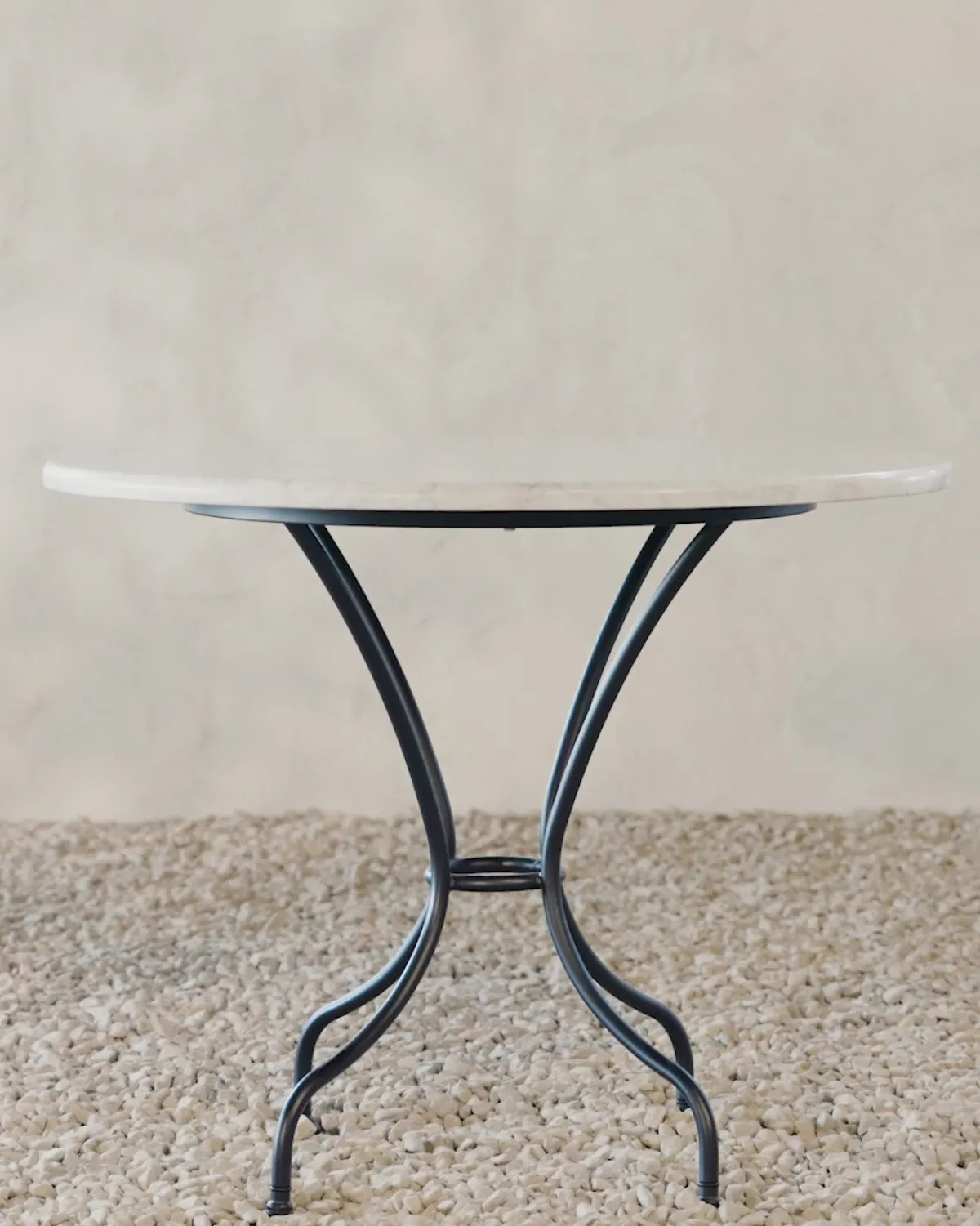With a sleek solid white marble tabletop supported by an intricately detailed powder-coated steel frame, our Pomeroy Outdoor Bistro Table was designed with beauty and durability in mind. With its timeless form and refined luxurious feel, it offers an enduring elegance that enhances both indoor and outdoor settings.