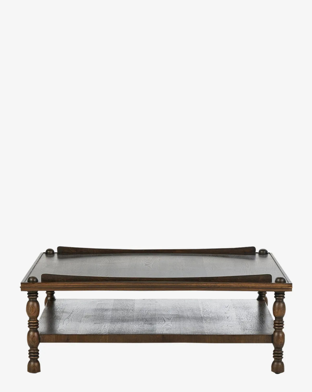 Antique-inspired but built to last, the Rhodes Coffee Table is crafted from durable oak veneer and features lathe-turned, knob styling detailing. Its two-tier design provides storage and display space, elevating the functionality of your living space.