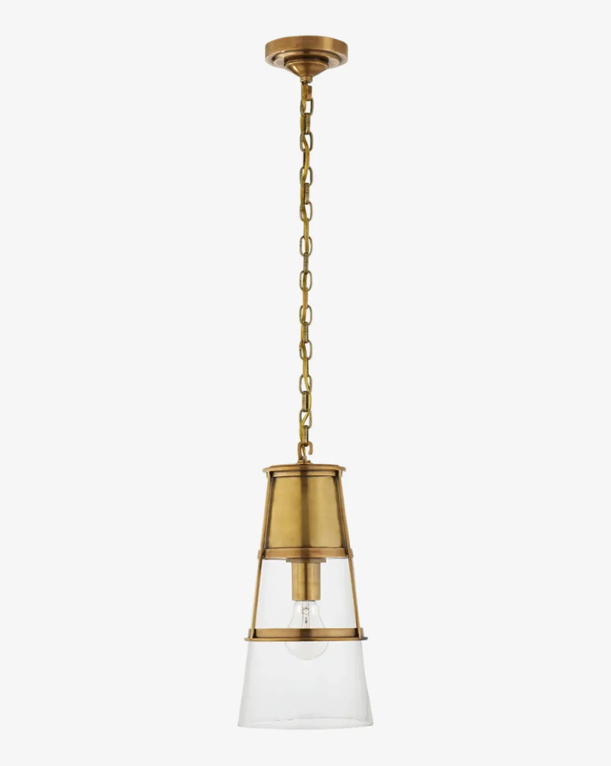 With a full array of metal finishes, and shade options, the streamlined silhouette of the Robinson Pendant looks good in any material mix.