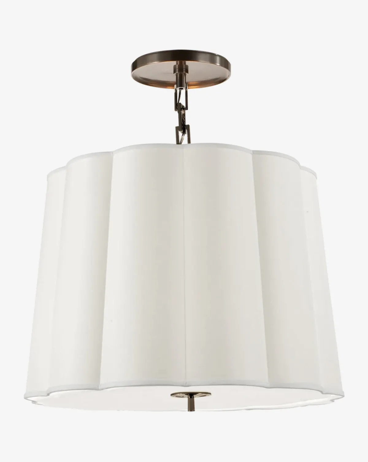 This simple scallop chandelier has a silk shade that will illuminate your space with a soft glow. We love its feminine shape and chain links in any finish!