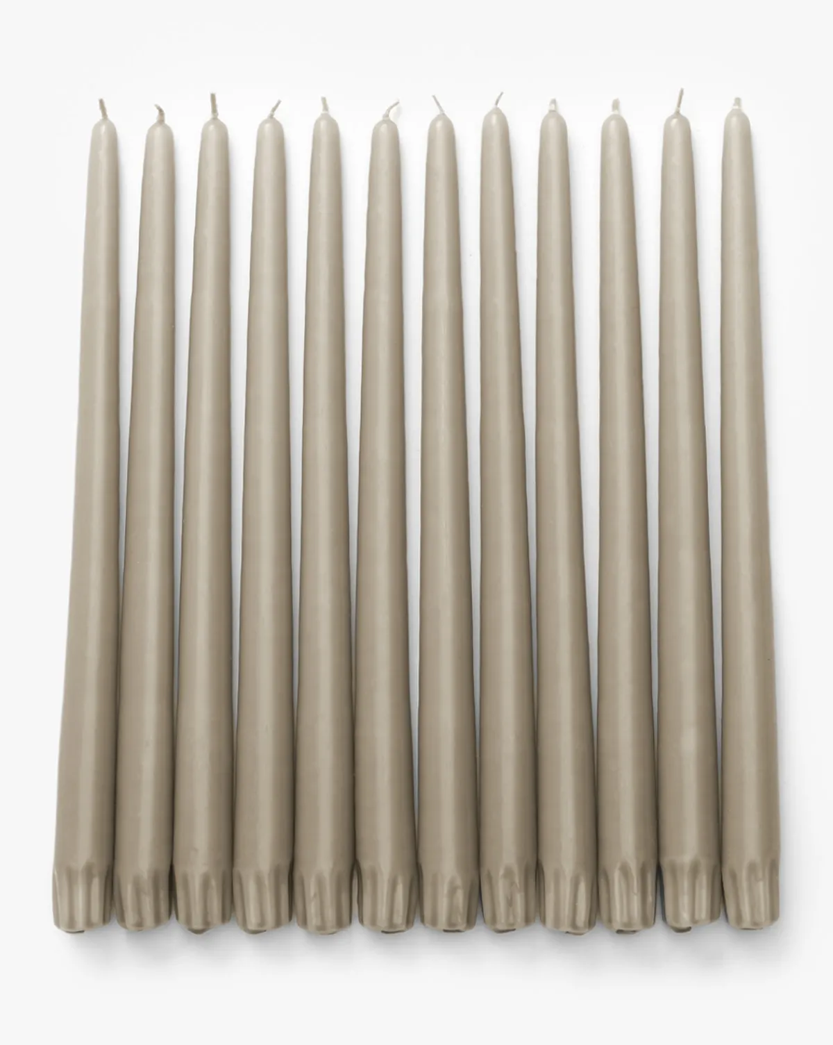 Hand-dipped in a rich tone, the Taupe Taper Candles are a cozy addition to styling. Made with the best ingredients, the taper candles layer elegantly with your console or tabletop vignettes.