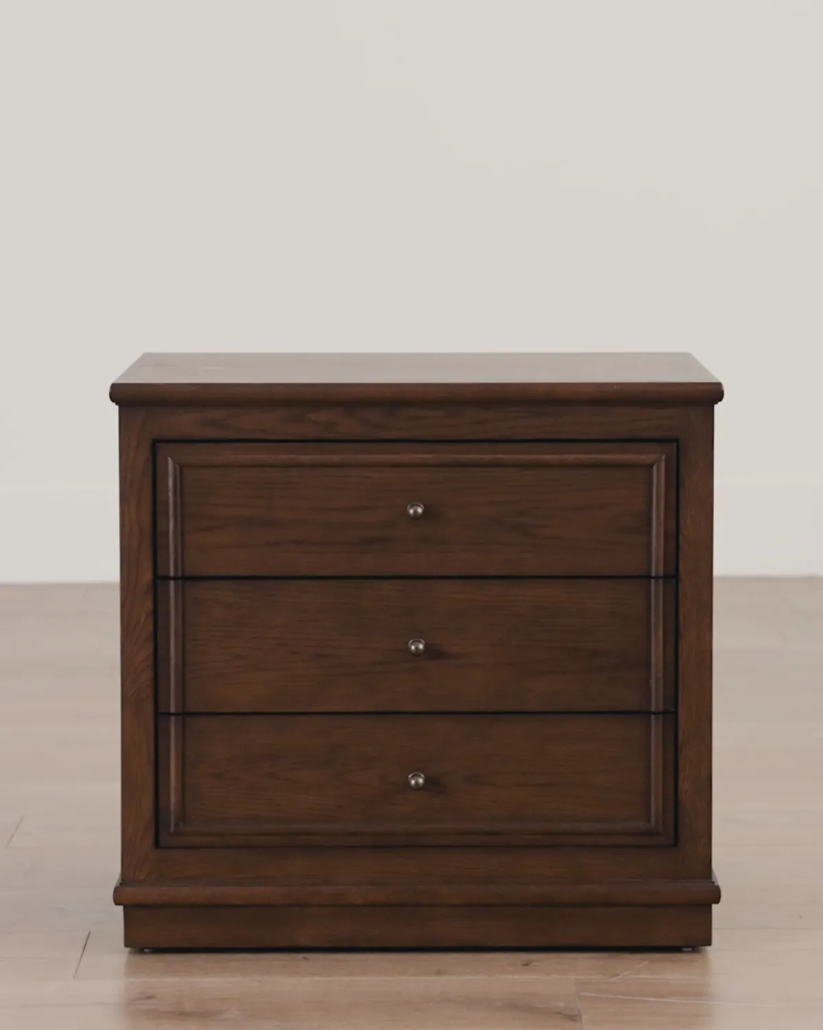 With its refined silhouette and English oak finish, the Yorkshire Oak Nightstand embodies enduring style. Antique brass pulls add a classic touch, while thoughtfully designed storage keeps bedside essentials close at hand in a piece that feels both classic and collected.